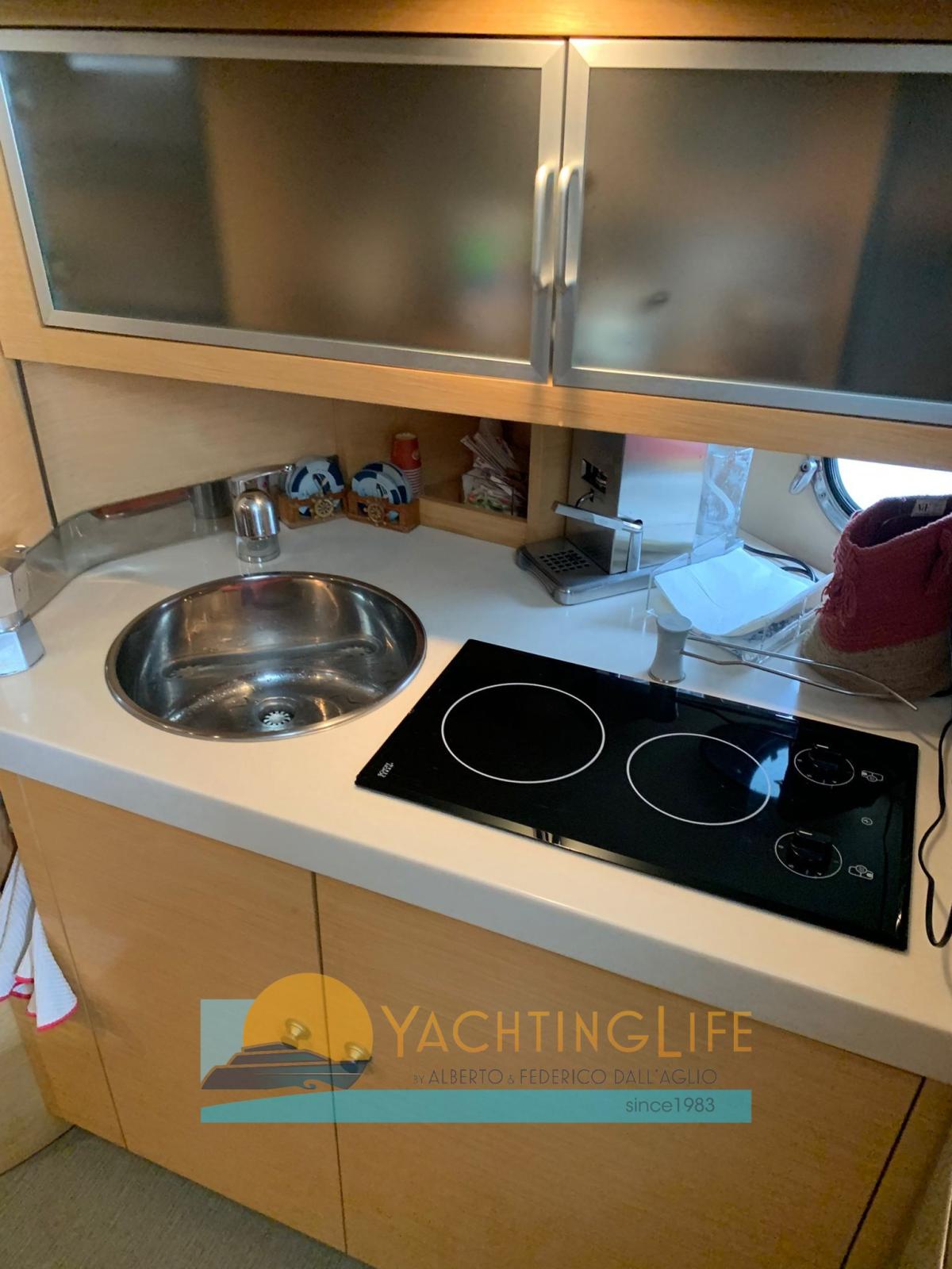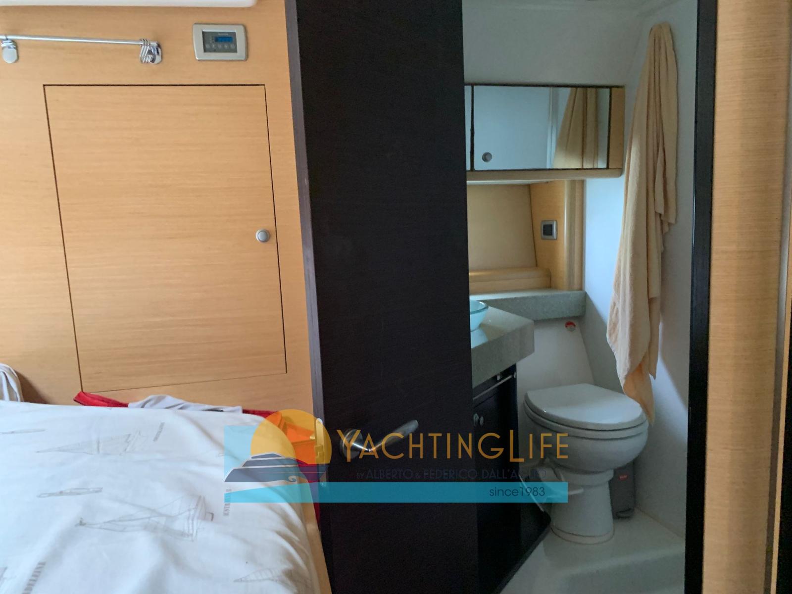 Allarme motore, Apertura Vano Motore Elettrica, Autoclave, Batterie (2 motori+1 servizi+generatore), Cavo corrente di banchina, Colorazione speciale (Grigio chiaro), Doccia esterna, Flap idraulici, Hard top, Indicatori Flaps, Lavandino nel Pozzetto, Luci di cortesia, Parabordi, Passerella (Idraulica), Piattaforma, Pompa di sentina automatica, Pompa di sentina manuale, Porta ingresso, Pozzetto Teak, Presa 220V banchina, Salpa Ancore Elettrico, Scaletta da bagno, Tavolo pozzetto, Tromba, 2 Winch tonneggio di poppa.