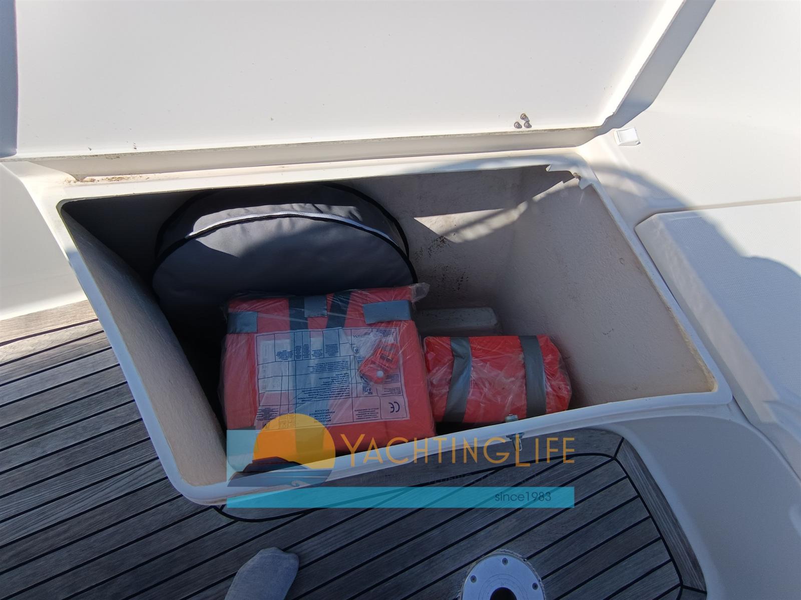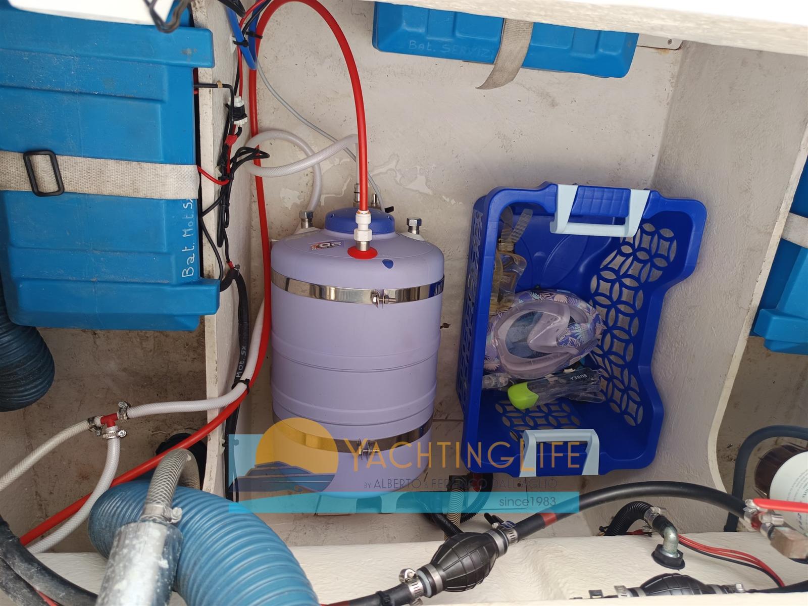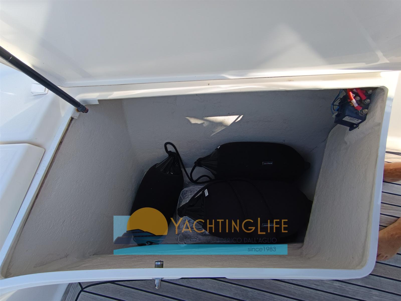 Allarme motore, Autoclave, Batterie (Nuove 2025), Colorazione speciale (Grigio 2025), Doccia esterna, Fari fissi a poppa, Lavandino nel Pozzetto, Parabordi, Pompa di sentina automatica, Porta ingresso, Pozzetto Teak, Presa 220V banchina, Salpa Ancore Elettrico, Scaletta da bagno, Tromba, T-Top.