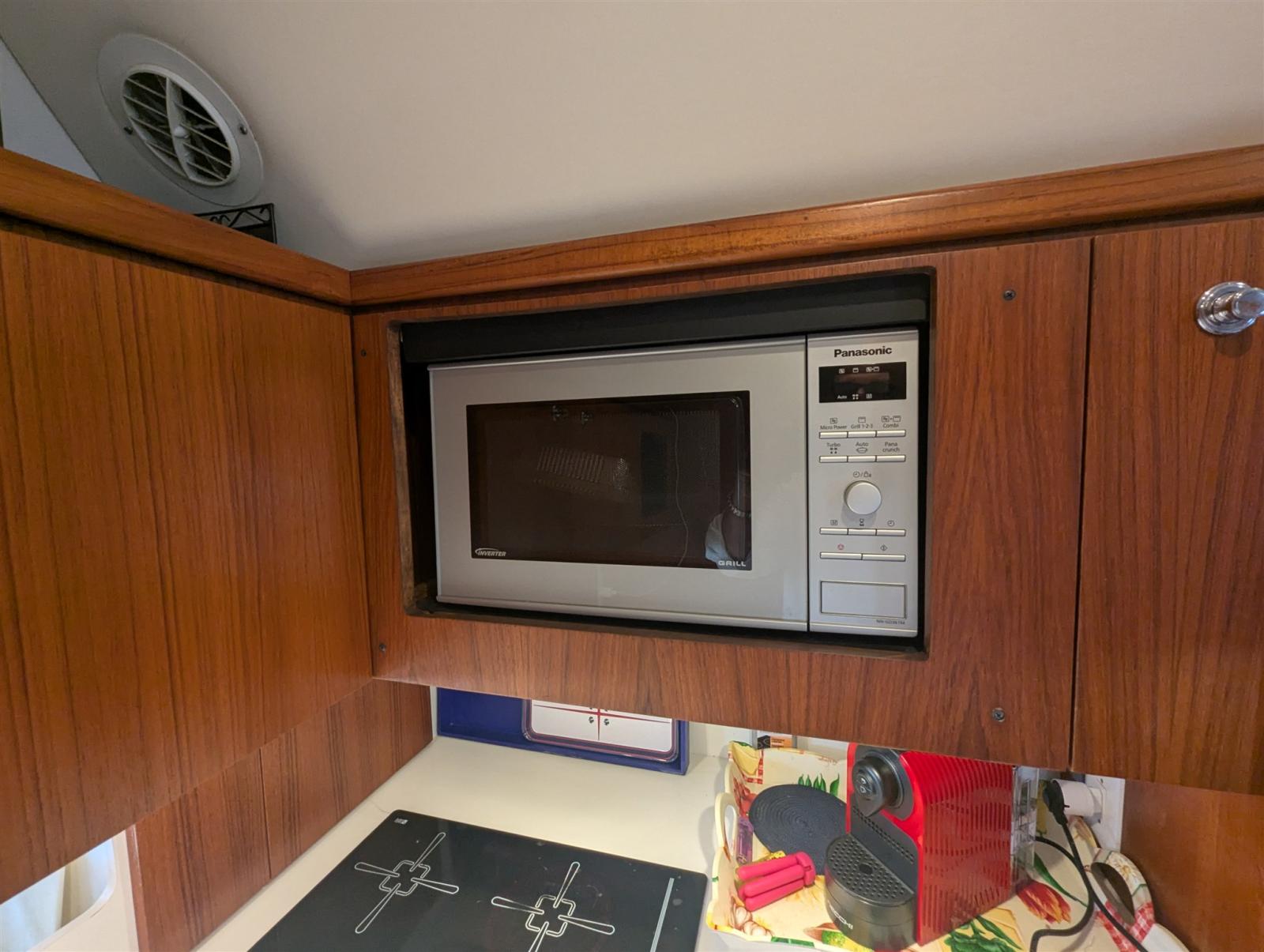 Angolo barra, Antenna radar, Contamiglia (Raymarine), Ecoscandaglio (Fuso 605), GPS (Raymarine), Pilota automatico (Simrad Robertson AP22), Plotter (Raymarine C90), Quadro comandi, Radio VHF (Icon IC M411), Strumenti di misura per motori.