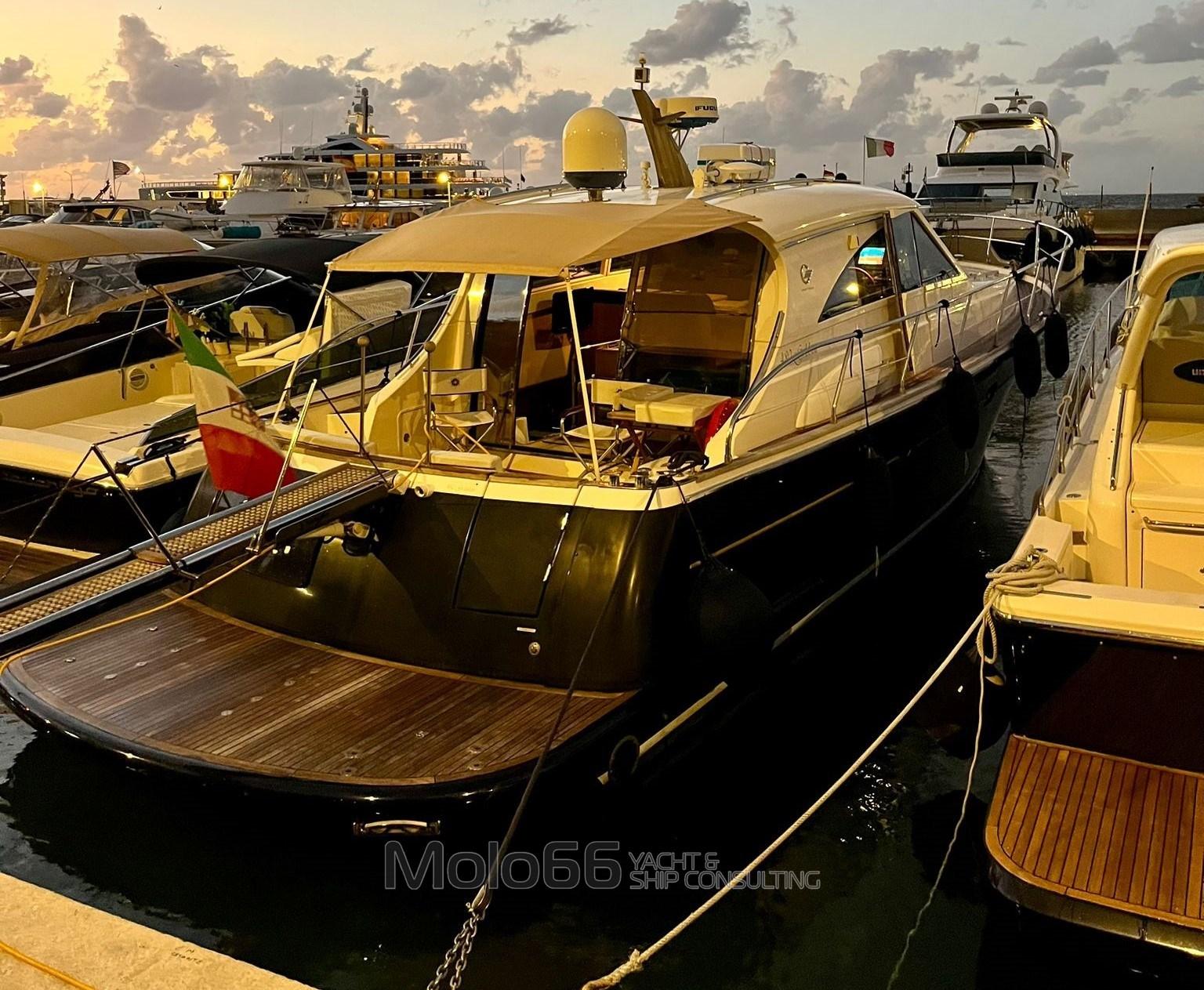 Allarme motore, Allarme sentina, Alternatore, Autoclave, Camminamenti laterali in teak, Colorazione speciale, Corrimano, Doccia esterna, Flap idraulici, Hard top, Impianto antincendio, Luci di cortesia, Passerella, Piattaforma, Pozzetto Teak, Presa 220V banchina, Salpa Ancore Elettrico, Scaletta da bagno, Tavolo pozzetto, Tromba, Winch tonneggio di poppa, Winch tonneggio di prua.