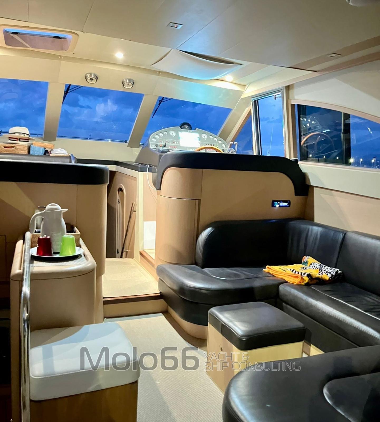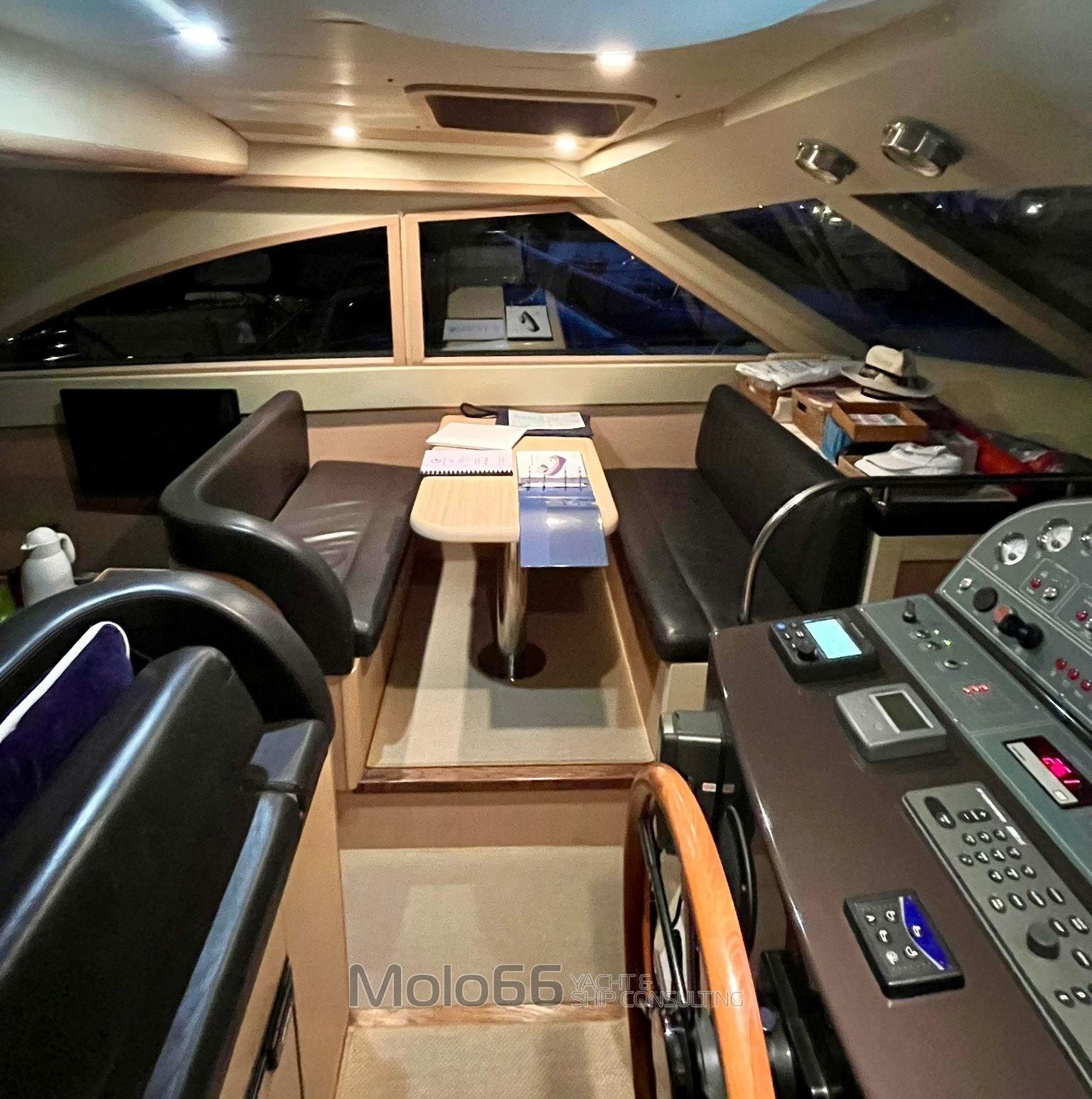 Antenna radar (Furuno), Comando motori elettronico, Display (Furuno), DSC vhf, GPS (Furuno), Pilota automatico (Furuno), Radio VHF (Furuno), Strumenti di misura per motori.