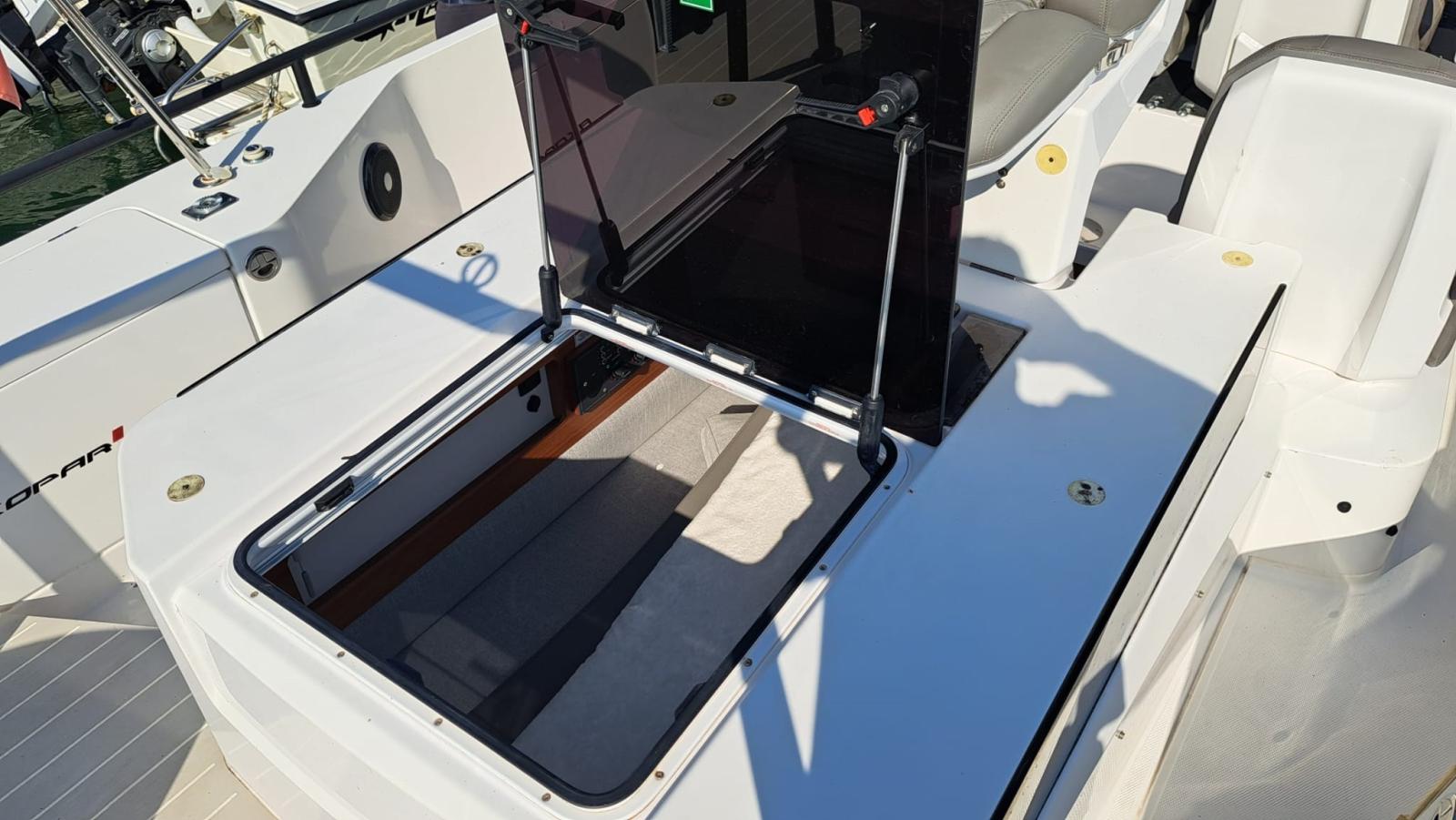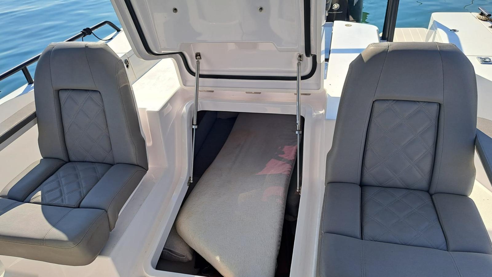 Autoclave, Auto-Trim, Doccia esterna, Flap elettrici, Lavandino nel Pozzetto, Luci di cortesia, Parabordi, Pompa di sentina automatica, Pompa di sentina manuale, Presa 220V banchina, Salpa Ancore Elettrico, Scaletta da bagno, Tromba, T-Top.