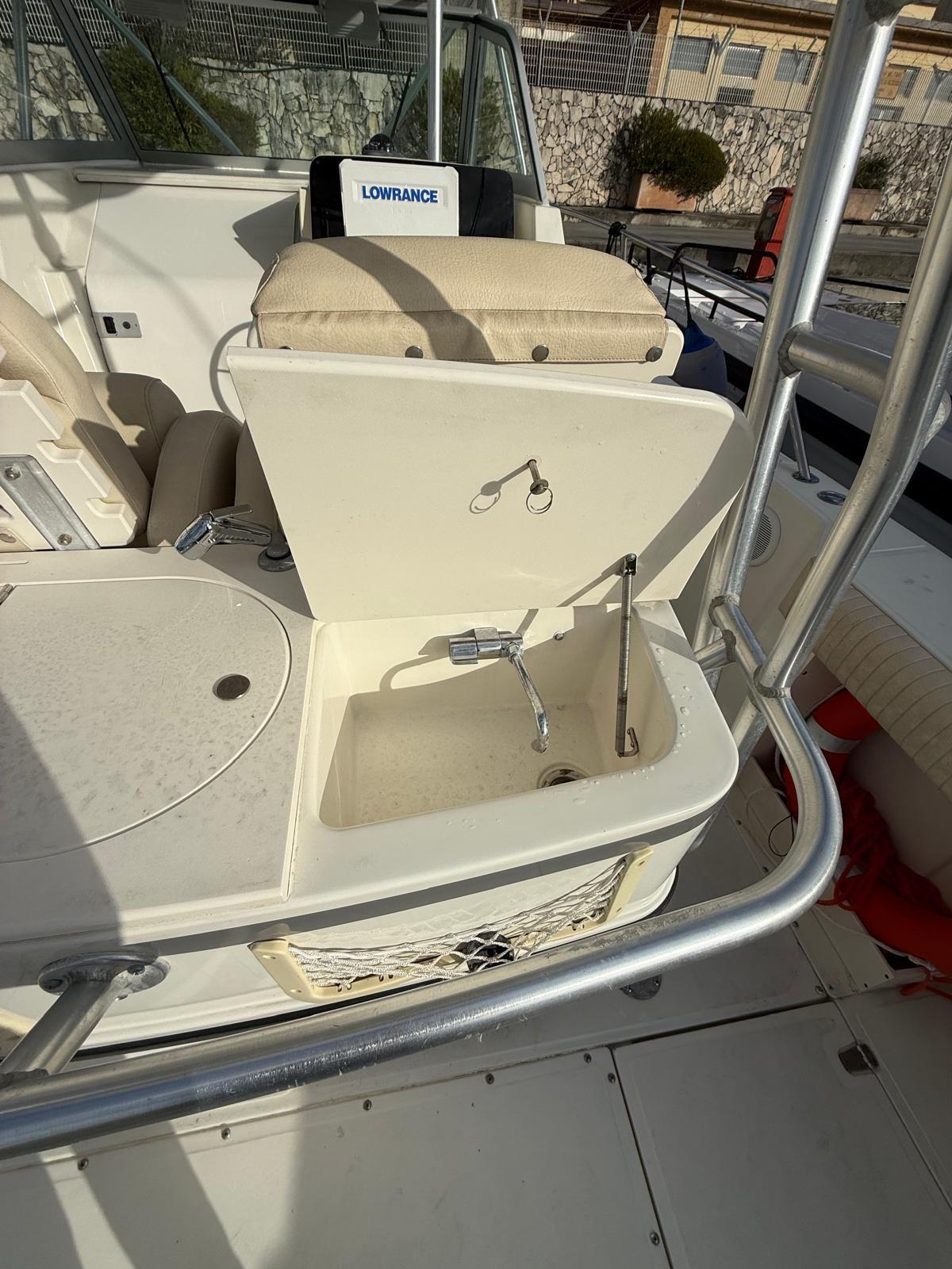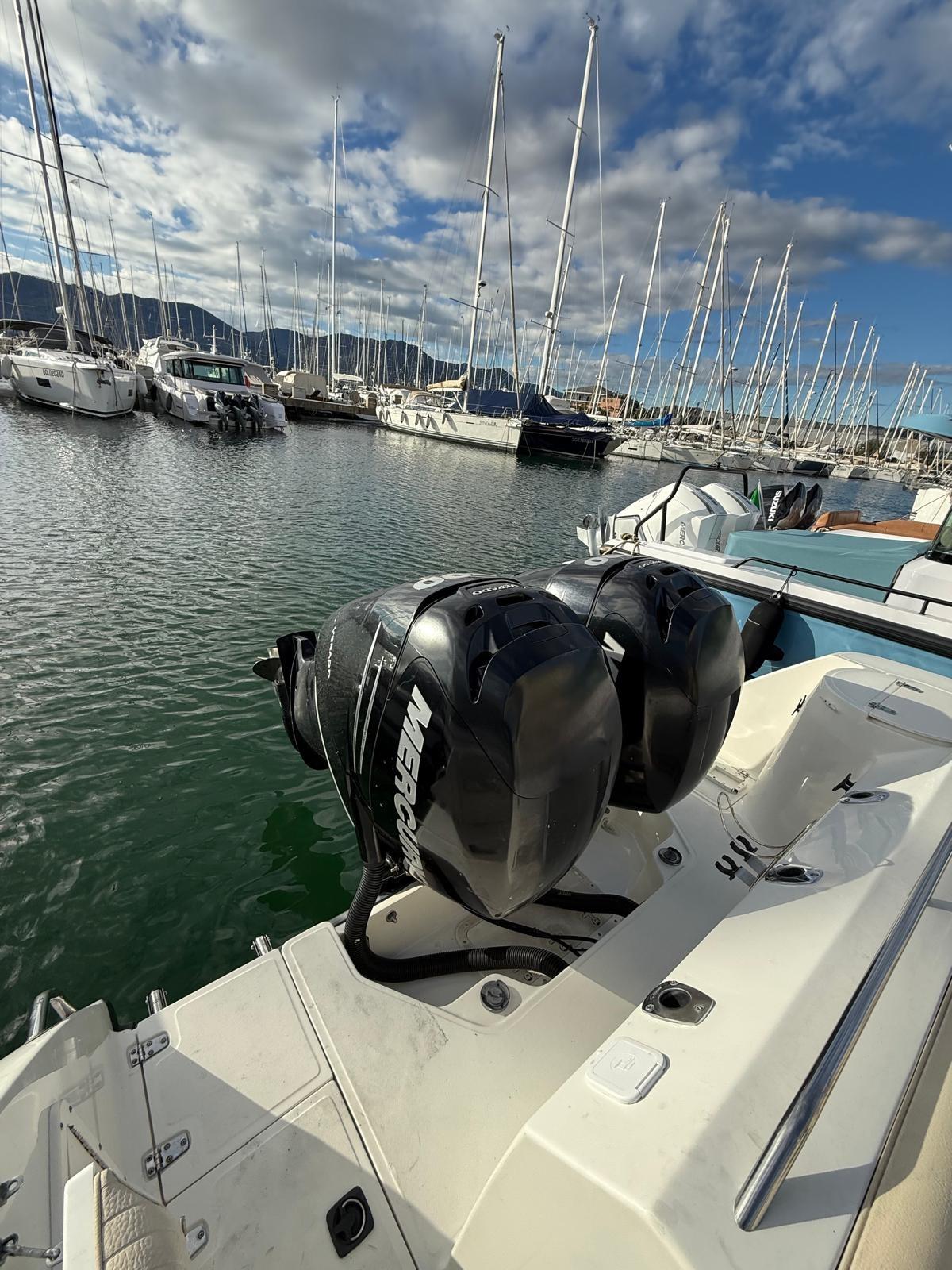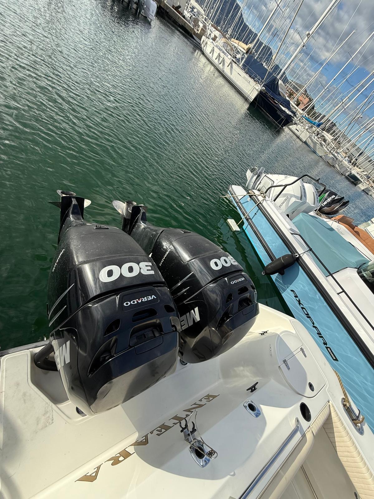 Allarme fumo/gas, Allarme motore, 2 Alternatore, Cavo corrente di banchina, Doccia esterna, Flap elettrici, Hard top (chiudibile), Lavandino nel Pozzetto, Luci di cortesia, Parabordi, Pompa di sentina automatica, Porta ingresso, Presa 220V banchina, Raddrizzatore, Salpa Ancore Elettrico, Scaletta da bagno, T-Top.