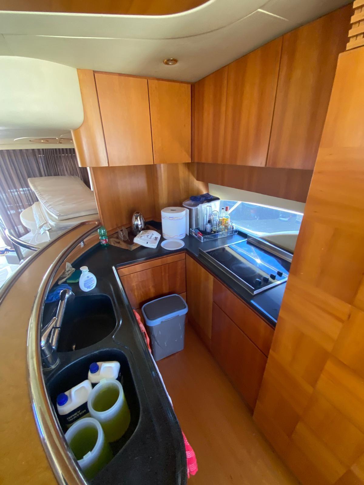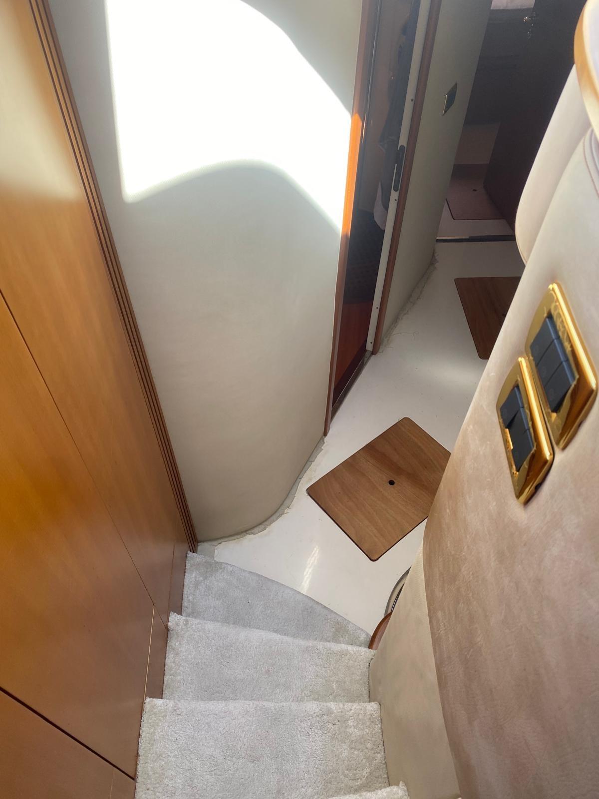 Allarme motore, Allarme sentina, Alternatore, Doccia esterna, Impianto antincendio, Lavandino nel Pozzetto, Luci di cortesia, Luci subacquee, Passerella, Pompa di sentina automatica, Pompa di sentina manuale, Ponte in teak, Pozzetto Teak, Presa 220V banchina, Presa acqua banchina, Salpa Ancore Idraulico, Scaletta da bagno, Selle per Tender, Tender, Tromba, Winch tonneggio di poppa, Winch tonneggio di prua.