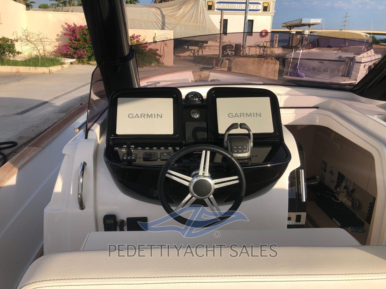 Angolo barra, Comando motori elettronico, Contametri catena, 2 Display (Garmin 12"), DSC vhf (Garmin), Ecoscandaglio (Garmin), Pilota automatico (Garmin), Plotter con antenna GPS.