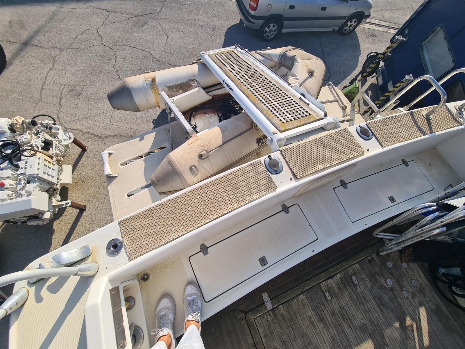 Allarme motore, Autoclave, Batterie (nuove 2022), Doccia esterna, Faro orientabile, Flap idraulici, Gruette a motore, Indicatori Flaps, Luci di cortesia, Passerella (Besenzoni), Piattaforma, Pompa di sentina automatica, Porta ingresso, Pozzetto Teak, Presa 220V banchina, Presa acqua banchina, Raddrizzatore, Rollbar, Salpa Ancore Elettrico, Scaletta da bagno, Tender (Arimar + mercury 2,5cv), Tromba.