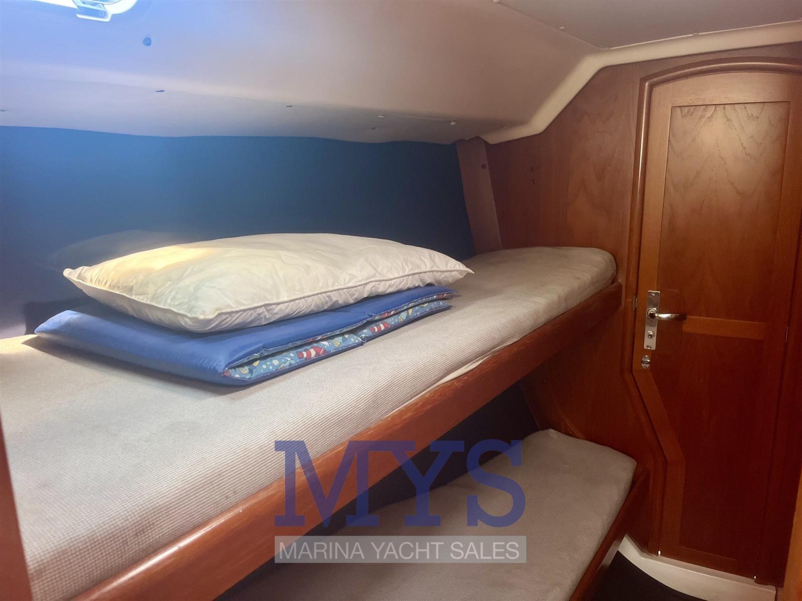 2 cabine con letti singoli a castello a prua, entrambe hanno accesso diretto allo stesso bagno, posizionato all'estrema prua