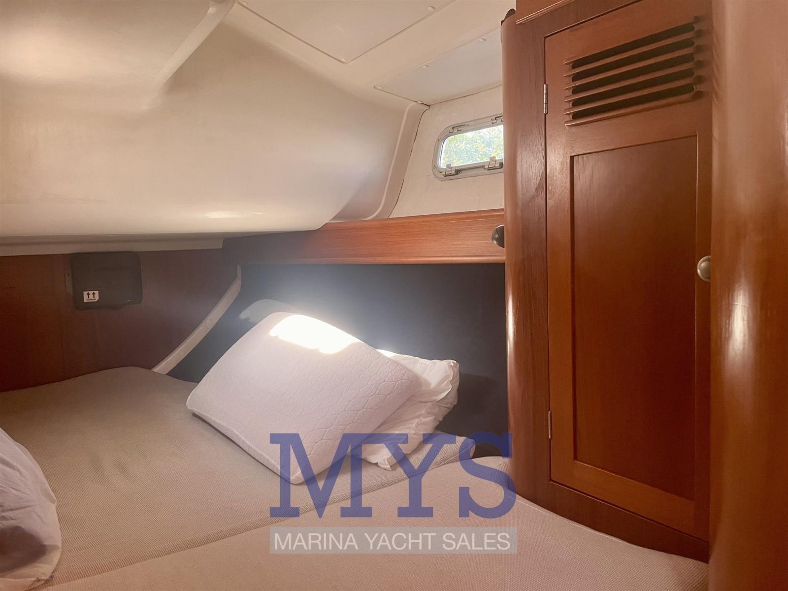 Il layout interno prevede 4 cabine e 3 bagni, soluzione non semplice da trovare per un’imbarcazione di 43 piedi