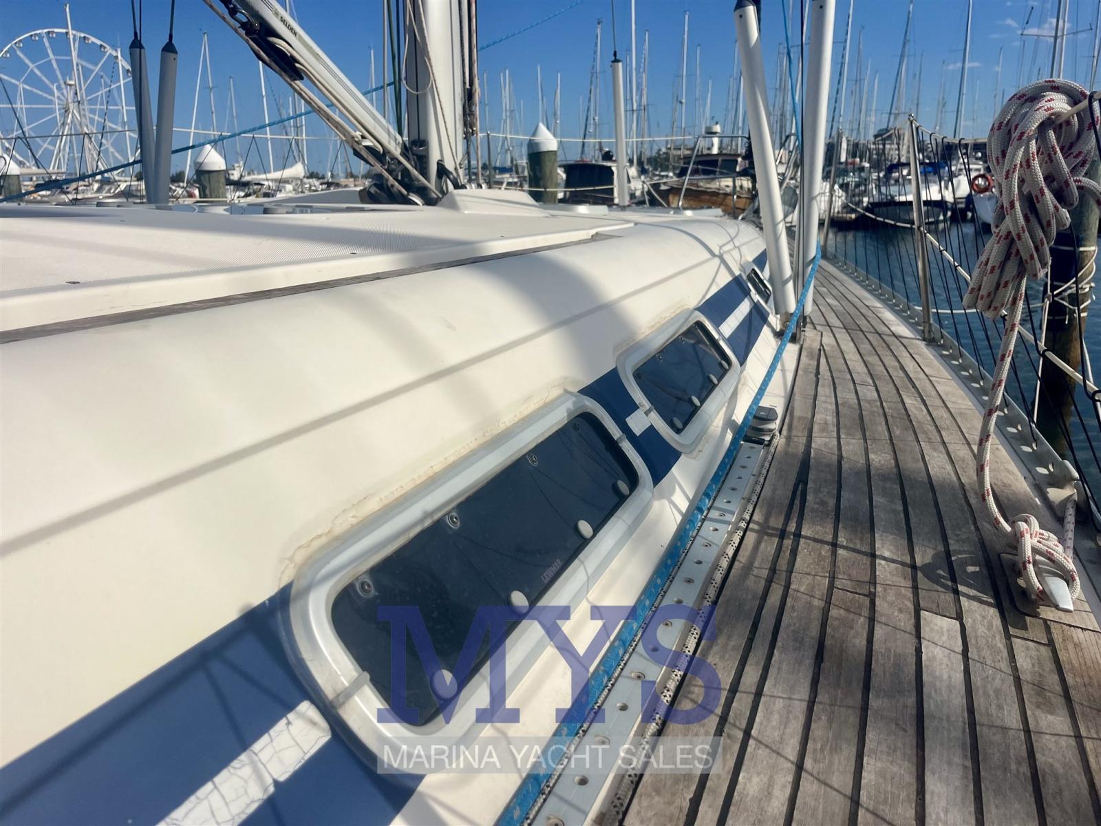 Ancora (50 mt di catena), Autoclave, 3 Batterie, Doccia esterna, 6 Parabordi, Pompa di sentina automatica, Pompa di sentina manuale, Ponte in teak, Pozzetto Teak, Raddrizzatore, Salpa Ancore Elettrico, Sartiame spiroidale, Scaletta da bagno, Tavolo pozzetto, 4 Winch.
