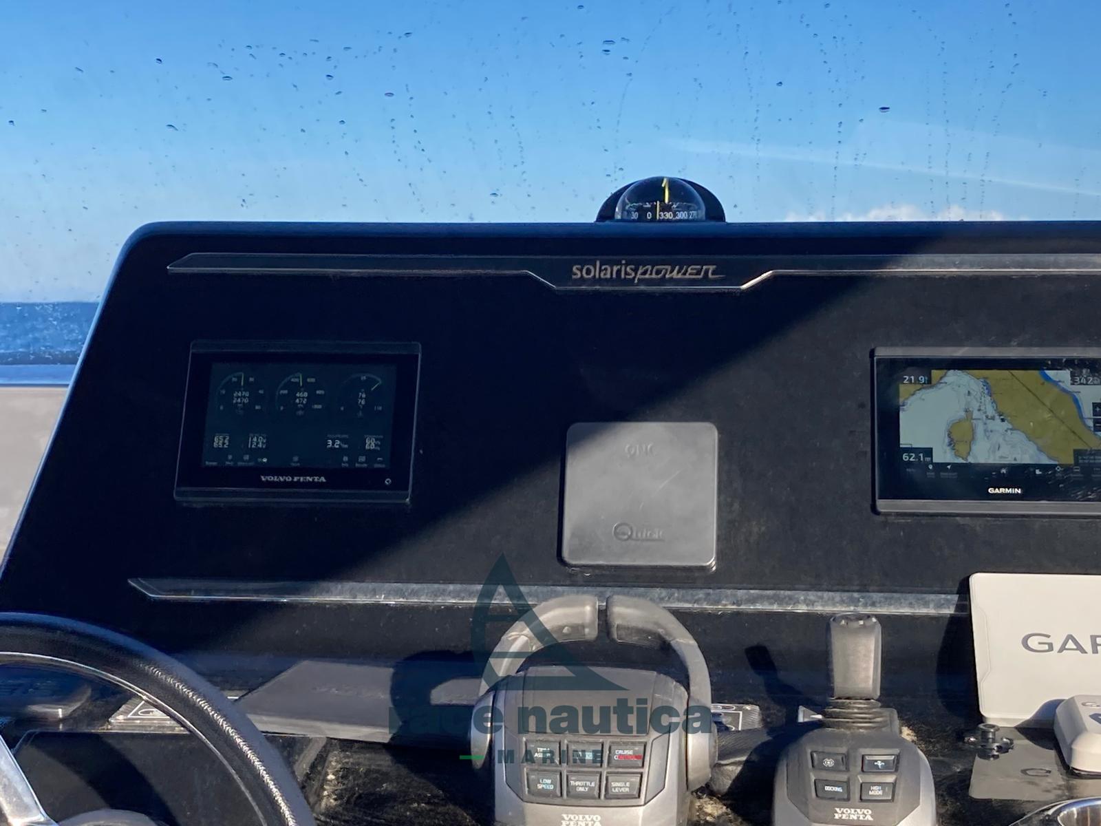 Solaris Power 40 Open in ottime condizioni e disponibile a visite. Joistick Volvo, Volvo trip computer, Autopilota volvo, Chartplotter Garmin, Elica di prua, Coperta verniciata con materiali alta temperatura, Coperta in teak, Teak (sintetico grigio con comento bianco), Murate verniciate con materiali ad alta temperatura, Passerella/scaletta bagno elettrico in acciaio inox con gradini, T-Top completo,Coperta e T-Top verniciati con materiale alta temperatura (grigio metallizzato), Doppia Elica Dual Prop, Scafo in Vetroresina, Coperta in Teak Sintetico, Boiler, Caricabatterie, Autoclave, Serbatoio acciaio INOX Gasolio,Tavolo pieghevole in pozzetto, 2 frigoriferi extra sotto le sedute del pozzetto + 1 frigorifero, Cucina con due fuochi ad induzione, Colori a scelta per cuscineria esterna, Portabicchieri prendisole a prua e poppa e sedili pilota, Oblò apribile di prua, Seconda cabina completa con due letti, Contacatena digitale, Kit ormeggio, Asta inox porta parabordi gavone di prua, Impianto stereo professionale, Batterie servizi aggiuntivi 105 amp + carica batterie maggiorato, Pacchetto luci di cortesia esterne, Generatore 5Kw, Bimini poppa con pali amovibili, copertura totale per console e parabrezza, Copertura per tavolo pozzetto, Copertura prendisole (prua e poppa) e divano centrale, Upgrade 4 casse esterne, Presa stagna garage, Colore per murate, Bimini poppa con pali amovibili (in carbonio), Dotazioni sicurezza entro 12 miglia, 8 Parabordi.