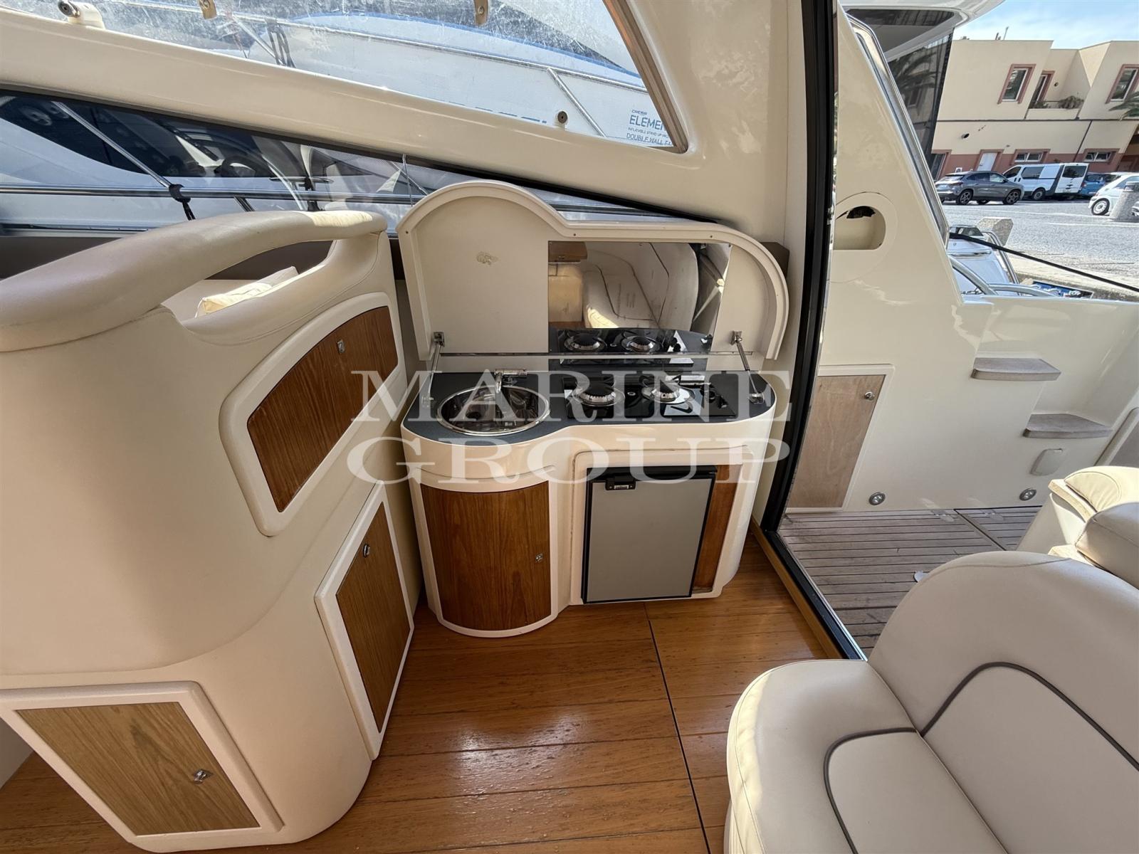 Altoparlanti, Aria condizionata, Bimini, Boiler, Cappottina, Clima reversibile, Cuscineria completa, Cuscineria di poppa, Cuscineria di prua, Cuscineria Pozzetto, Fornello, Frigorifero esterno, Frigorifero interno, Impianto TV, Inverter, Microonde, Pavimento interno in legno, Piastra elettrica, Prese interne 12v, Prese interne 220v, Radio AM/FM, Stereo, Tendalino, TV, Caricabatterie, Colorazione speciale (rossa), Comando motori elettronico, Doccia esterna, Flap idraulici, Hard top elettrico, Lavandino nel Pozzetto, Log, Luci di navigazione, Passerella, Piattaforma, Pompa di sentina elettrica, Pompa di sentina manuale, Porta ingresso, Pozzetto Teak, Presa 220V banchina, Salpa Ancore Elettrico, Scaletta da bagno, Tavolo pozzetto elettrico, Tavolo Salone Abbattibile, telecamera pozzetto, Apertura vano motore elettrica