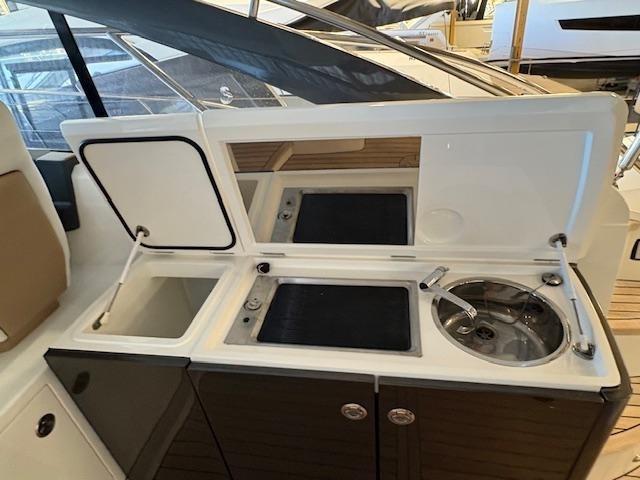 Allarme motore, Autoclave, Doccia esterna, Hard top, Luci subacquee, Parabordi, Passerella, Piattaforma (affondabile), Pozzetto Teak, Presa 220V banchina, Presa acqua banchina, Salpa Ancore Elettrico, Tavolo pozzetto.