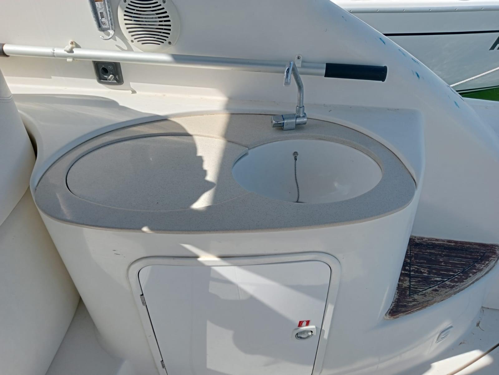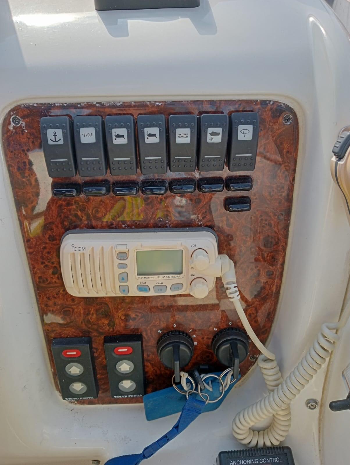 Allarme motore, Autoclave, 3 Batterie (2025 nuove 2 batterie motori), Doccia esterna, Flap elettrici, Gruette per tender (telescopiche), Indicatori Flaps, Lavandino nel Pozzetto, Luci di cortesia, Passerella (pieghevole ad incastro (nuova )), Piattaforma, Pompa di sentina automatica, Porta ingresso, Presa 220V banchina, Raddrizzatore, Rollbar, Salpa Ancore Elettrico, Scaletta da bagno, Tavolo pozzetto, Tavolo Salone Abbattibile, Tromba.