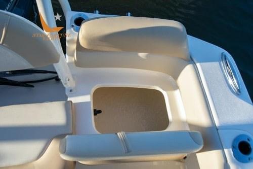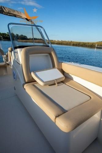 Un pozzetto per esche a ricircolo a poppa, un set di cuscini di prua, luci LED sotto il trincarino, una piattaforma da bagno con scaletta e vani portaoggetti nascosti unici negli schienali dei cuscini di prua.