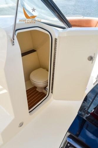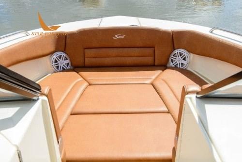 Una delle innovazioni uniche a bordo del modello è un sedile elettronico rivolto a poppa che si trasforma facilmente in una sdraio quando attivato, completato dal sedile di poppa di sinistra ripiegabile.