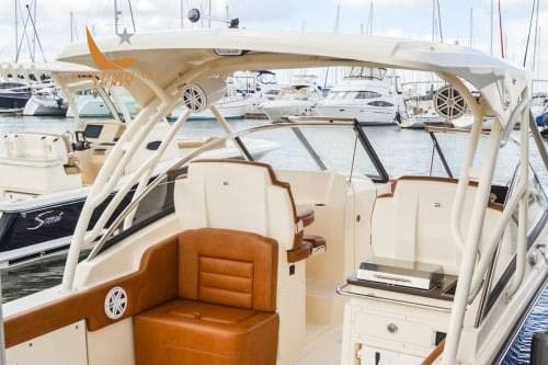 • Sedili di prua completamente imbottiti con imbottitura rimovibile • Sedie del capitano con schienale in fibra di vetro deluxe con braccioli e cuscino ripiegabile • Sedile elettrico lounge • Sedile di poppa ripiegabile • Sedile ripiegabile lato sinistro • Vano portacanne lato dritta • Vano portaoggetti di prua • Armadietto per sci • Vano portaoggetti della console • Bitte a molla a scomparsa • (1) set Phender Pro a centro nave su ciascun lato • Corrimano di prua diviso in acciaio inox • (7) portabicchieri in acciaio inox • (4) portacanne di poppa in acciaio inox • Battiscopa in acciaio inox • Cassetto per la spazzatura • Porta di passaggio • Seakeeper • Piattaforme da bagno con scaletta • Sterzo idraulico • Lavaggio con acqua dolce (10 gal) • Pozzetto esca aerato/ricircolante • Pellicola termoretraibile • Luci LED al 100% • Garmin 943XS con trasduttore GT12M • Stereo Bluetooth JL Fusion con (4) altoparlanti da 7" • Tagliere e lavandino in Corian® con frigorifero YETI da 35 qt e cassetto per utensili • Porta combinata USB/USB-C e porta USB aggiuntiva nel vano portaoggetti del timone • Batterie di avviamento e domestiche • Caricabatterie • Lavaggio dell'ancora con acqua dolce • Verricello, ancora in acciaio inox, cima e catena • Frontalino del timone nero