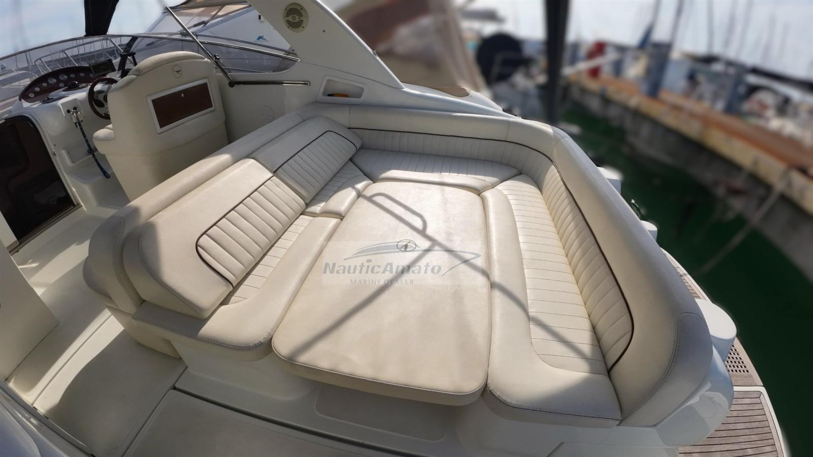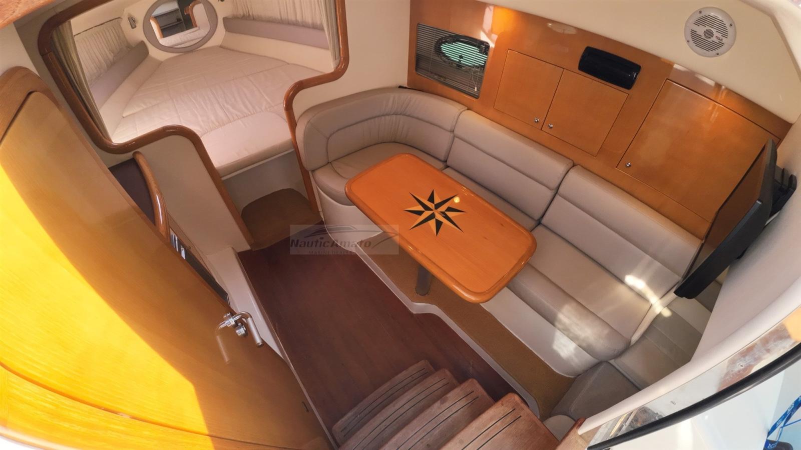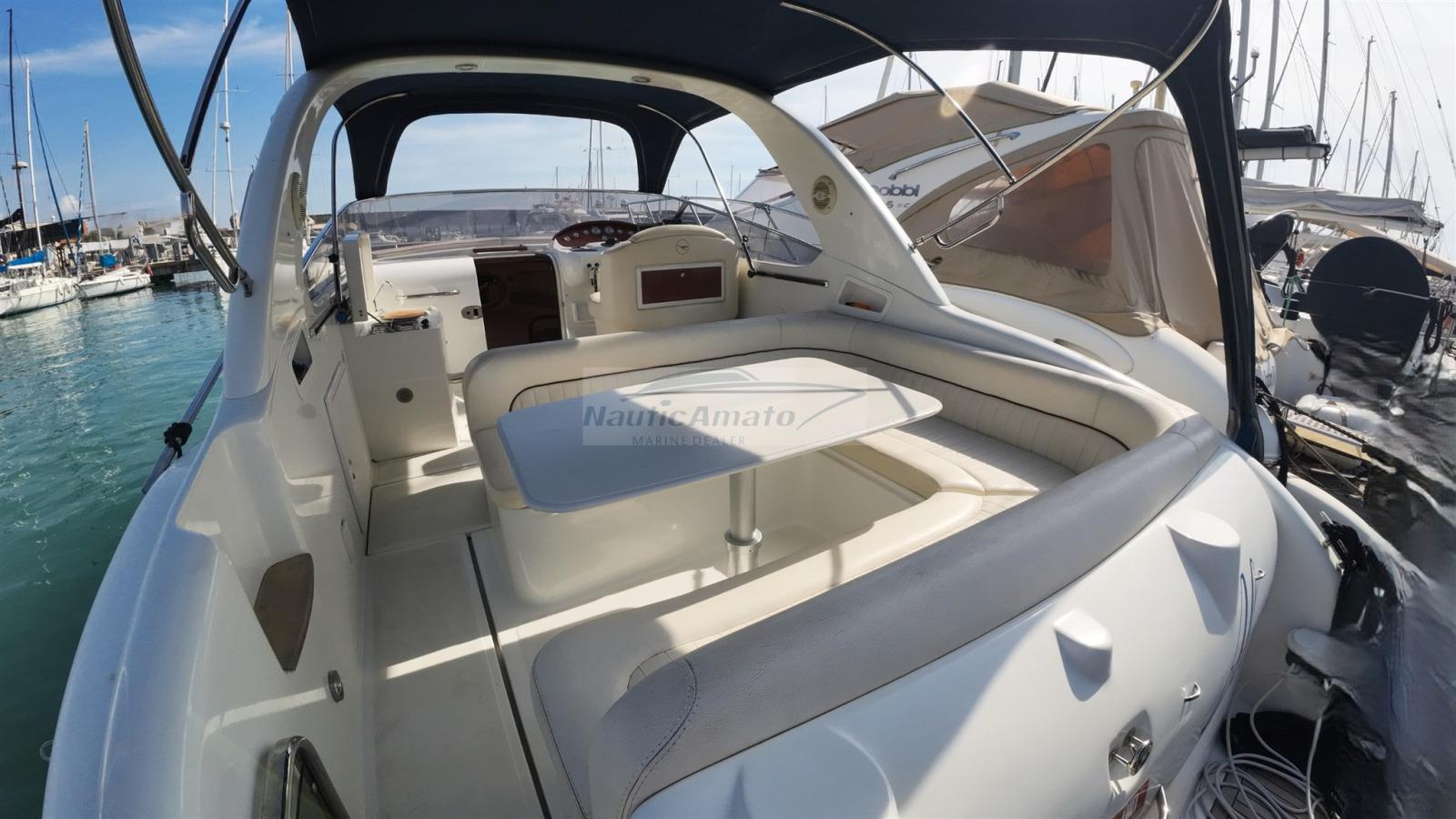 Allarme motore, Apertura Vano Motore Elettrica, Autoclave, Colorazione speciale (blu), Corrimano, Doccia esterna, Flap elettrici, Indicatori Flaps, Lavandino nel Pozzetto, Luci di cortesia, Presa 220V banchina, Rollbar, Salpa Ancore Elettrico, Scaletta da bagno, Tavolo pozzetto (movimento elettrico), Tavolo Salone Abbattibile.