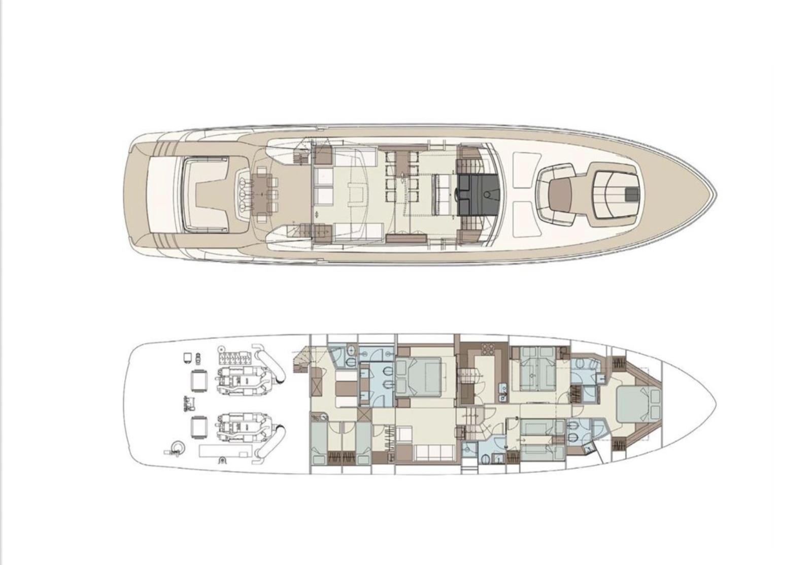 I motori, perfettamente mantenuti e in piena efficienza, permettono allo yacht di raggiungere una velocità massima di 38 nodi con un comfort acustico sorprendente.