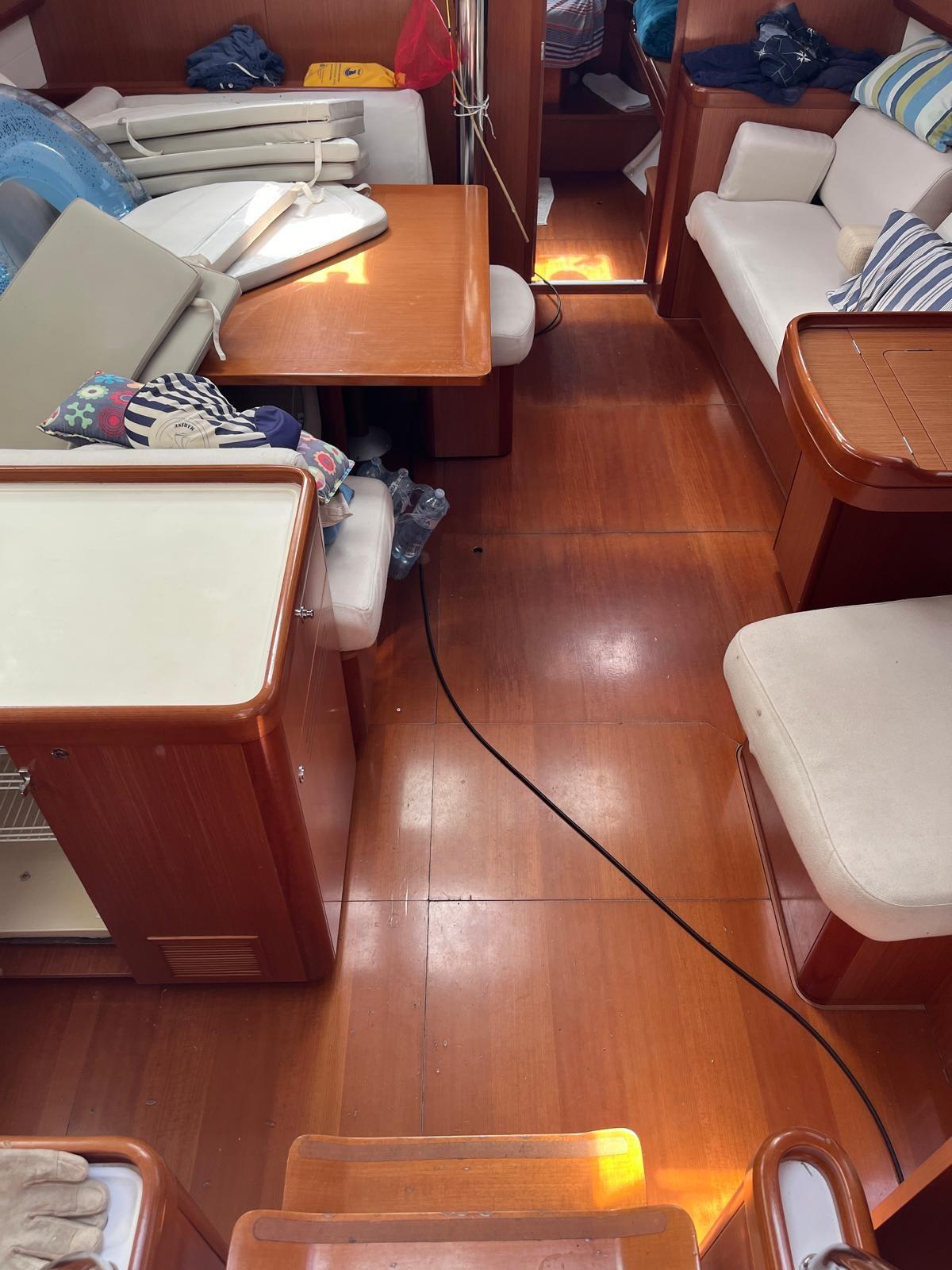 Allarme motore, Ancora (20kg Delta catena mm12 75 mt catena), Autoclave, Autogonfiabile (Arimar 8 p), 6 Batterie (4 serv., 1 motore , 1 elica prua), Camminamenti laterali in teak, Caricabatterie (40 a), Doccia esterna (calda e fredda), Doppia timoneria, 2 Pannelli Solari, Passerella (carbonio), Piattaforma, Pompa di sentina automatica, Pompa di sentina manuale, Pozzetto Teak, Presa 220V banchina, Raddrizzatore, Salpa Ancore Elettrico, Scaletta da bagno, Supporto motore fuoribordo, Tender (e FB Honda 2,3 HP), 4 Winch (3 elettrici), Windex.