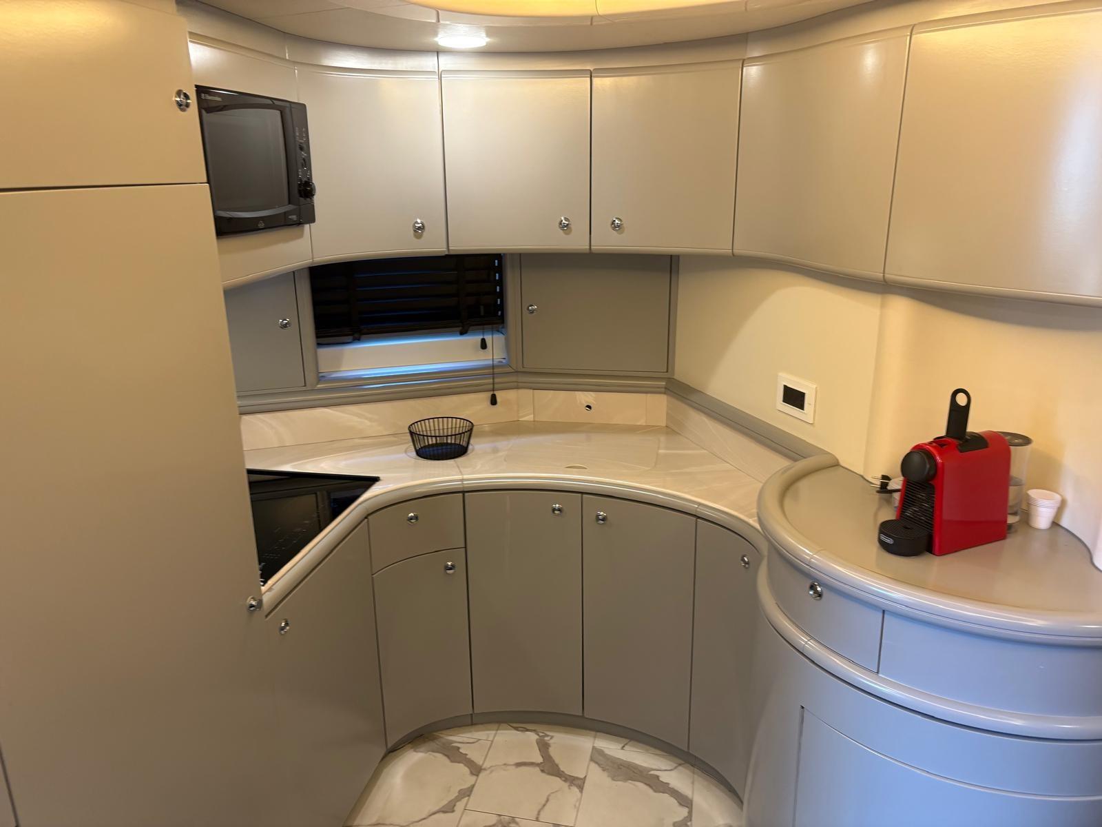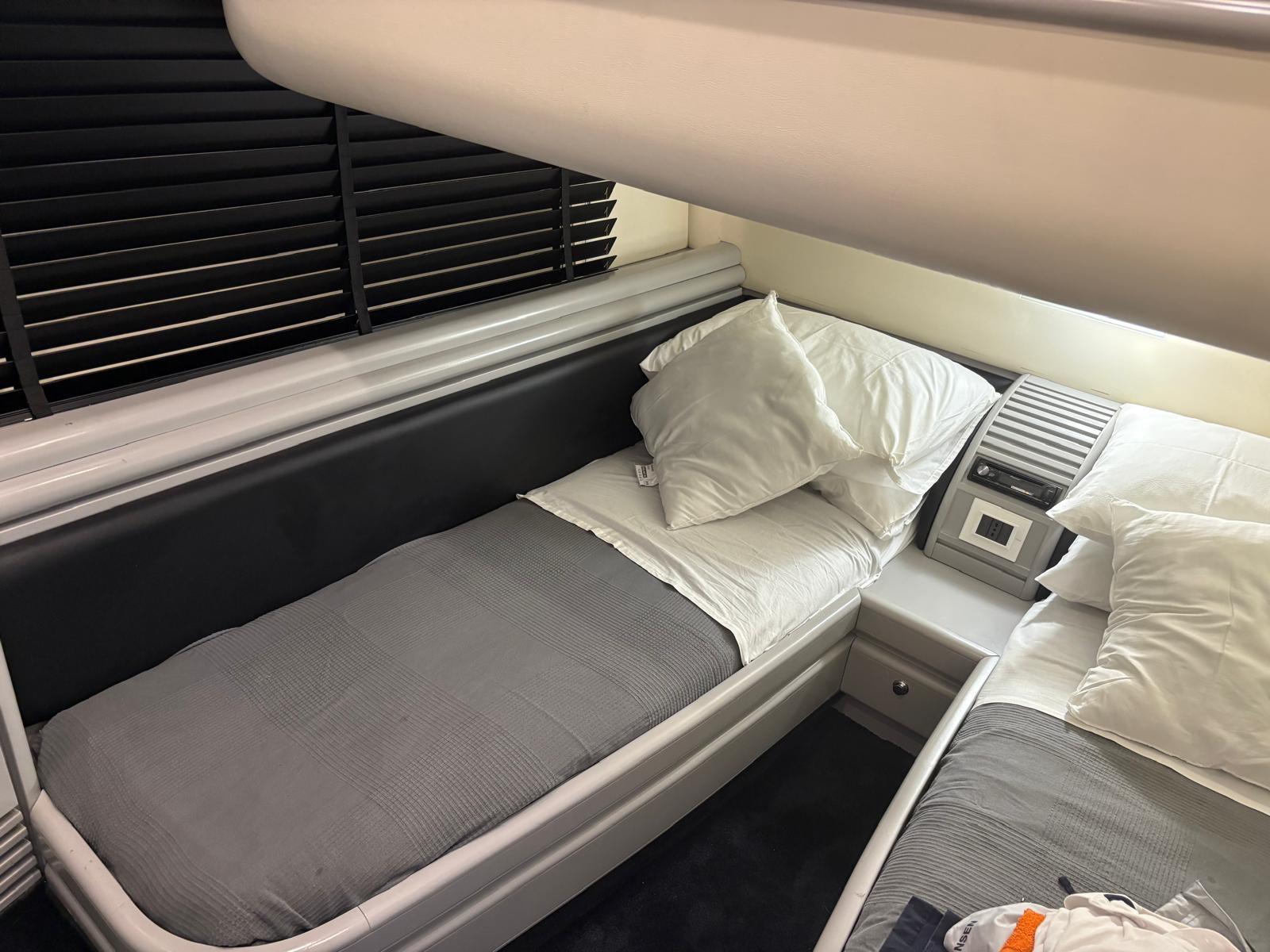 Attrezzatura da cucina piano cottura 4 fuochi a induzione nuovo, forno microonde, frigo grande nuovo Motori MAN 1300cv meccanici, generatore KOHLER 16kw ore di moto 1235,Tipo trasmissioni ARNESON, elica di prua side power, equipaggiamento elettronico 2 plotter SIMRAD VHF GPS RADAR ECO faro orientabile, Pilota automatico SIMRAD ( da riparare ), inverter, aria condizionata nuova installata a luglio 2025 condaria, la cuscineria sia interna che esterna sono in discrete condizioni , cuscineria di poppa da rifare