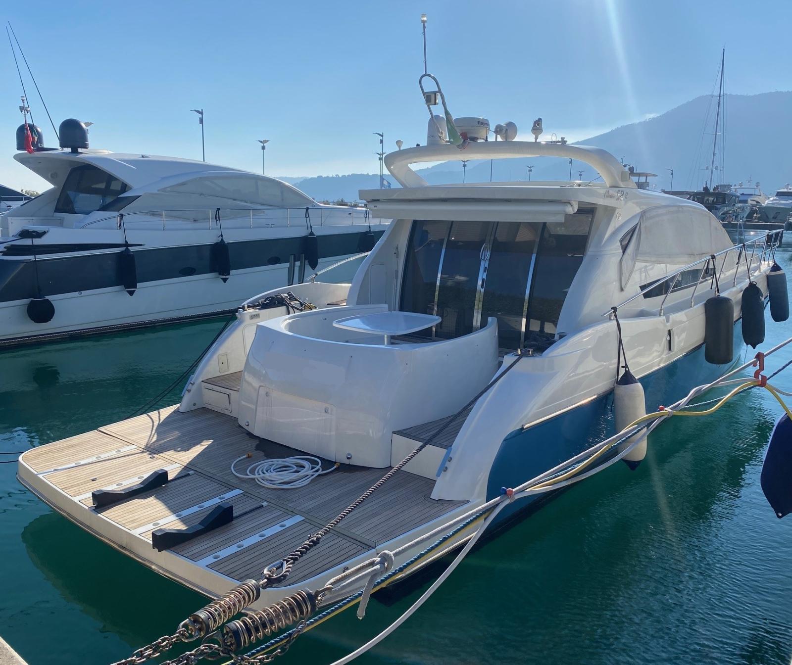 Allarme motore, Allarme sentina, Autoclave, Colorazione speciale (CARTA ZUCCHERO), Doccia esterna, Flap idraulici, Hard top, Impianto antincendio, Luci di cortesia, Passerella (IDRAULICA A SCOMPARSA), Piattaforma (IDRAULICA AFFONDABILE), Pompa di sentina automatica, Pompa di sentina manuale, Porta ingresso, Pozzetto Teak, Presa 220V banchina, Raddrizzatore, Rollbar, Salpa Ancore Elettrico, Scaletta da bagno, Selle per Tender, Tavolo pozzetto (ELETTRICO), Tender, Tientibene con cancelletti, Tromba, Winch tonneggio di poppa.