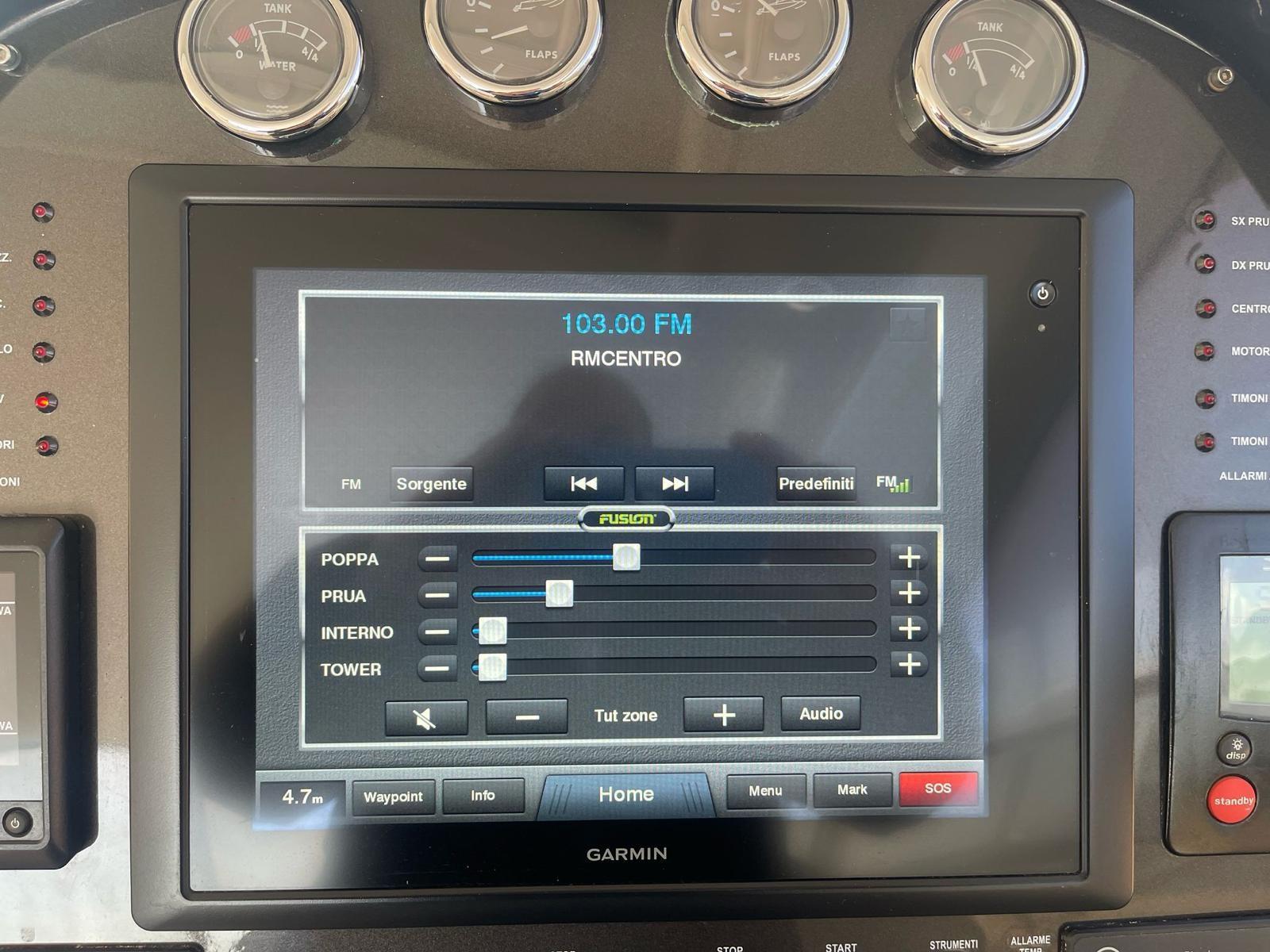 Angolo barra, Antenna radar, Comando motori elettronico (ZF), Contametri catena (QUICK), Display (MOTORE DIGITALE MAN), DSC vhf, Ecoscandaglio (RAYMARINE ST40), GPS (GARMIN 8012 G2 VISION 716 TOUCH), Pilota automatico (ST 6001).