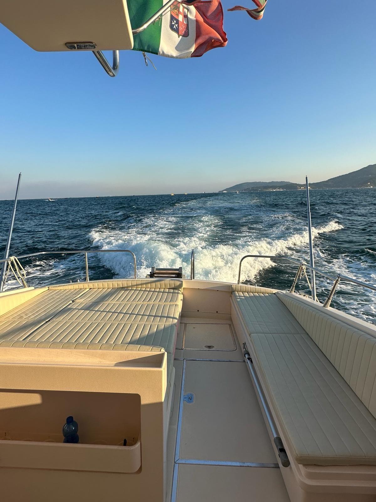Allarme motore, Allarme sentina, Autoclave, Colorazione speciale (SCAFO ROSSO), Doccia esterna, Faro orientabile, Flap elettrici, Lavaggio catena, Lavandino nel Pozzetto, Luci di cortesia, Passerella, Piattaforma, Pompa di sentina automatica, Pompa di sentina manuale, Porta ingresso, Presa 220V banchina, Raddrizzatore, Rollbar, Salpa Ancore Elettrico, Scaletta da bagno, Tavolo pozzetto, Tromba.
