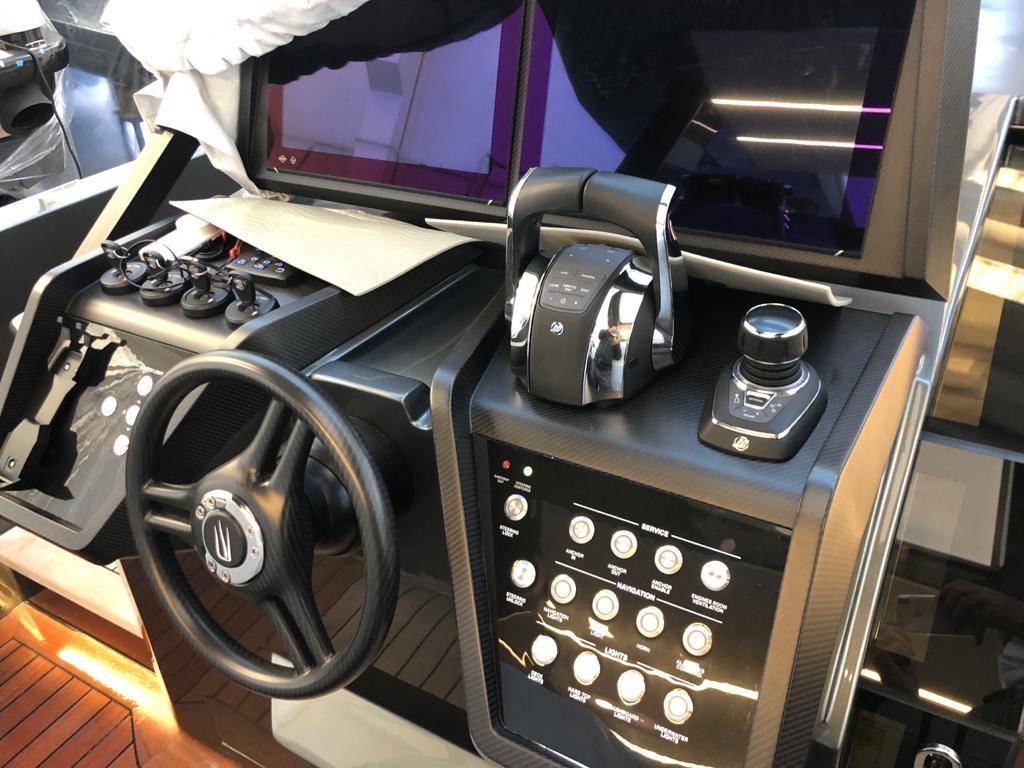 AIS, Angolo barra, Antenna radar, Comando motori elettronico, Computer di bordo, DSC vhf, Joystick, Plotter con antenna GPS.