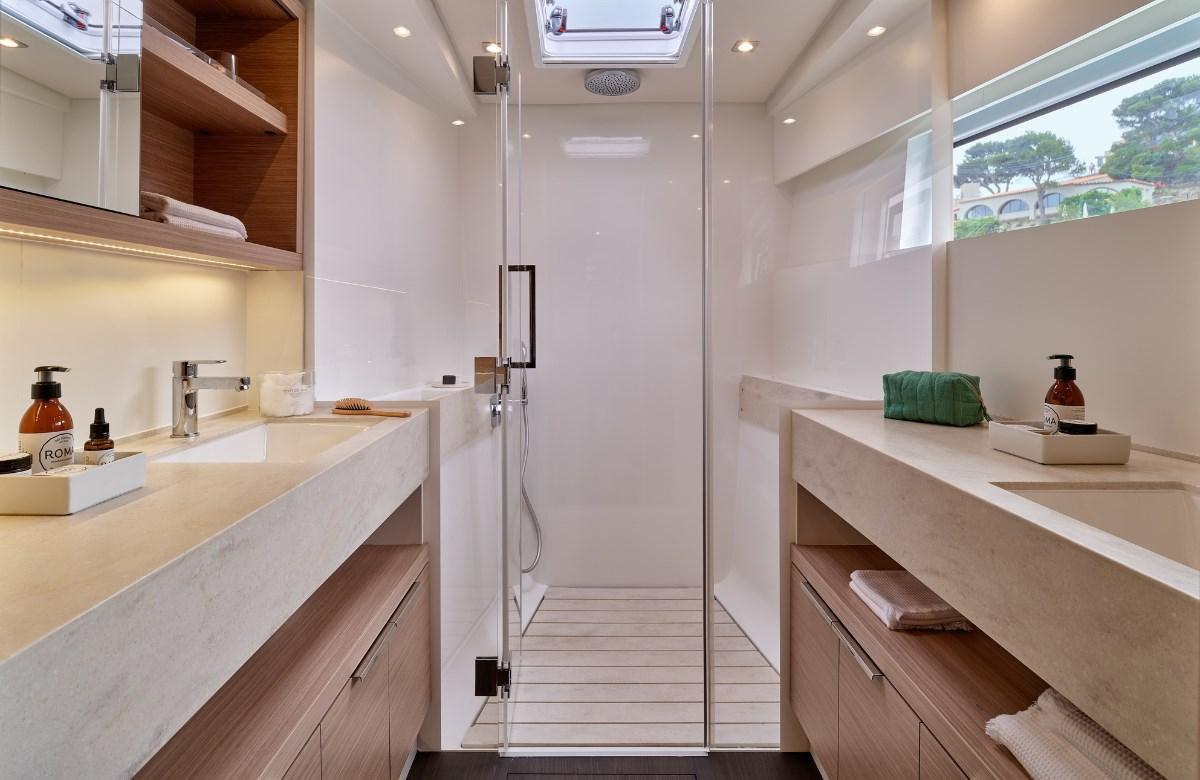 Autoclave, Gruette per tender, Luci di cortesia, Pompa di sentina automatica, Porta ingresso, Pozzetto Teak, Presa 220V banchina, Presa acqua banchina, Salpa Ancore Elettrico, Winch.