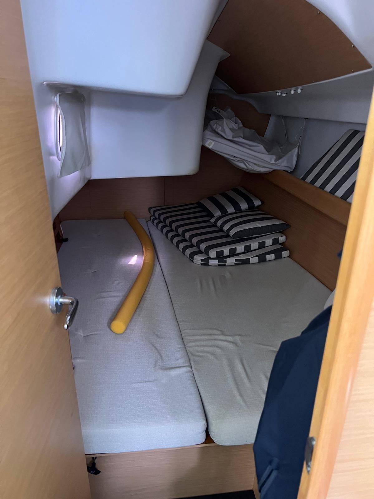 Cabina matrimoniale a V di prua, 2 cabine a poppa e bagno con wc