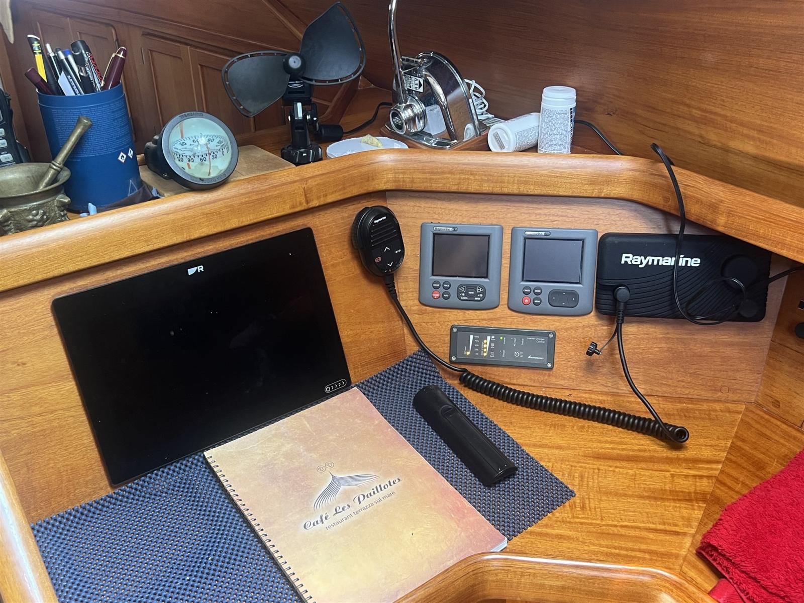 AIS (In/out Raymarine), Antenna radar (Raymarine RD418D 18" 4kW), Contametri catena (Lofrans Polaris con display), 3 Display (multifunzione interno/esterno), DSC vhf (Raymarine), GPS (cartografico Raymarine C90W interno/esterno), Pilota automatico (Hydraulic System - Raymarine ST70 on the console | Raypilot SPX10 on the pilot station | Telecomando S100), 2 Plotter con antenna GPS (RAYMARINE AXIOM 12 NEW), Radar (Raymarine), Radio VHF (Raymarine Ray-55E), Stazione vento (Raymarine ST60).