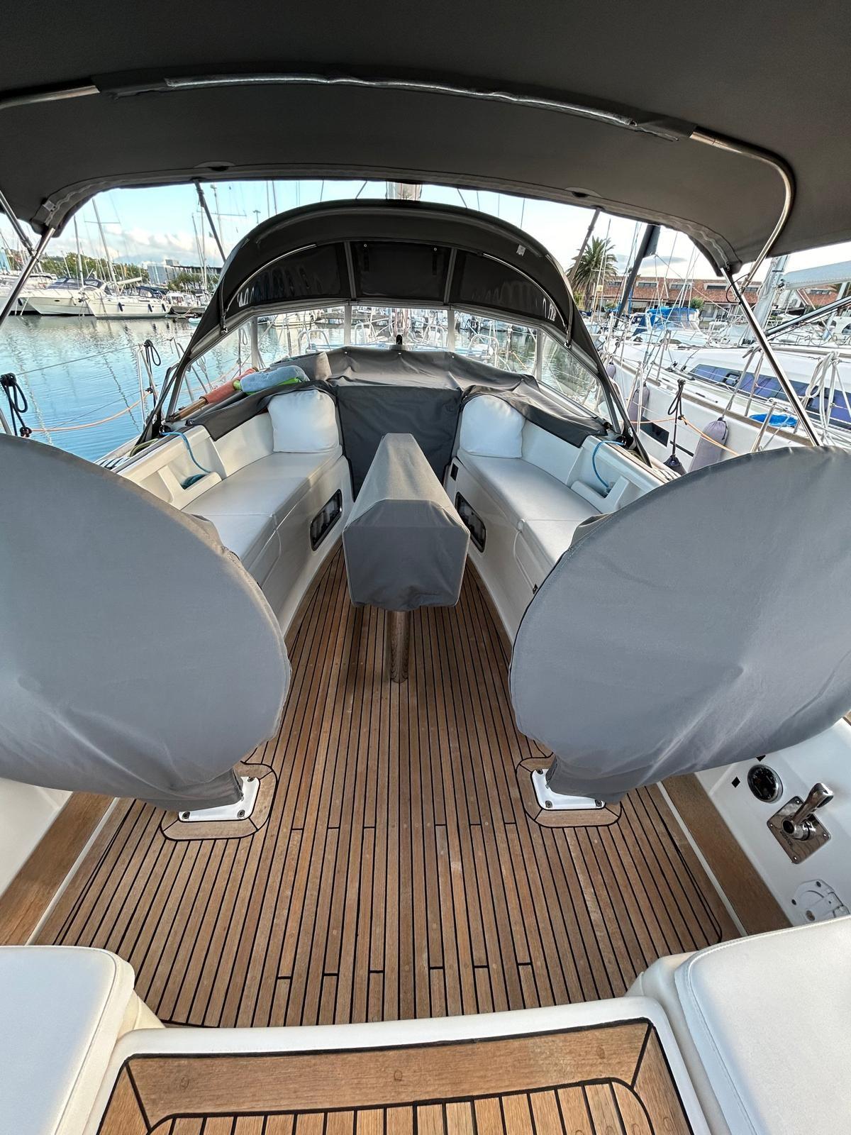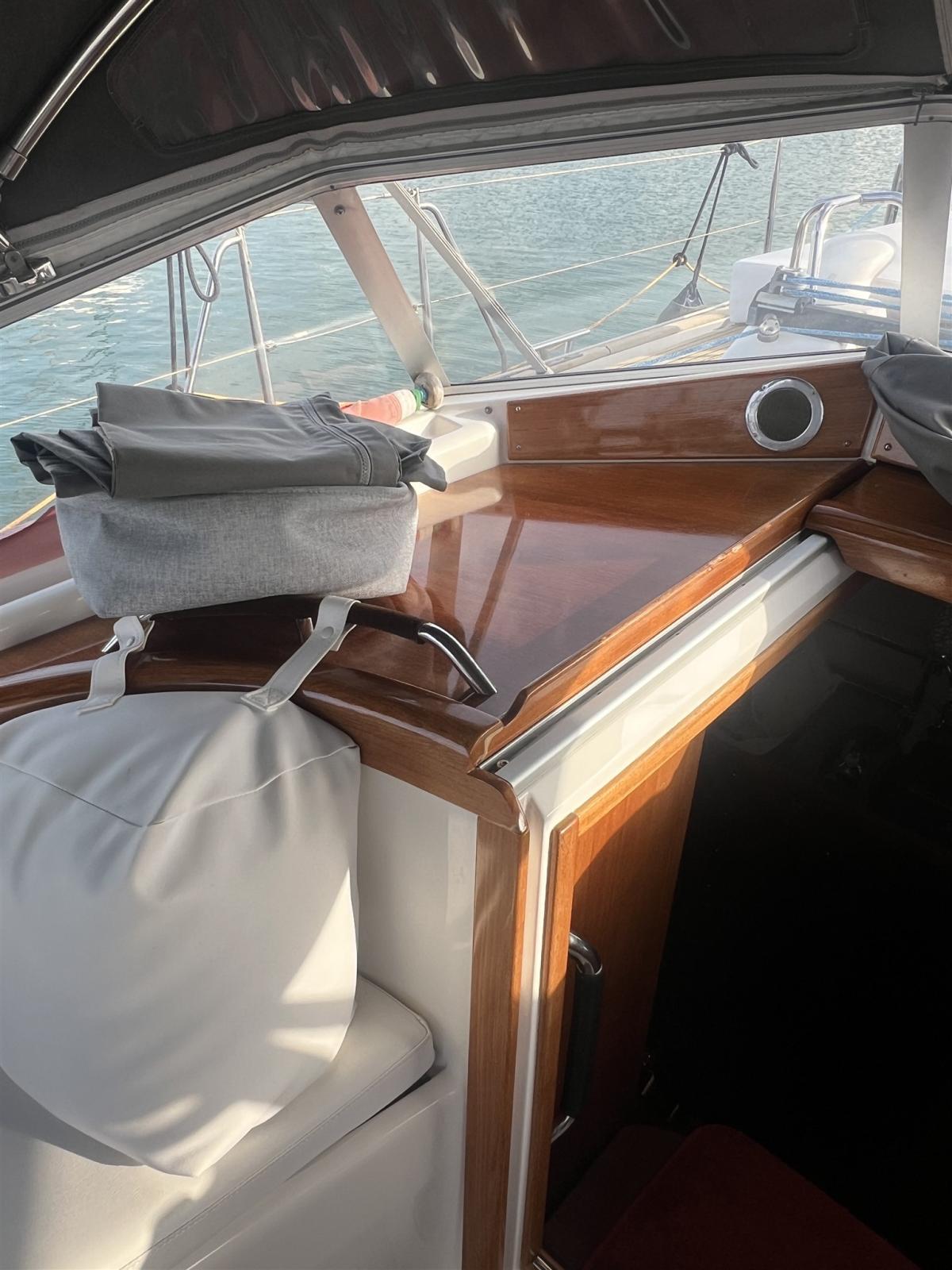 Bimini con nuova struttura in acciaio da 30mm (2023); Spryhood(2023); tavolo pozzetto in teak con lampada