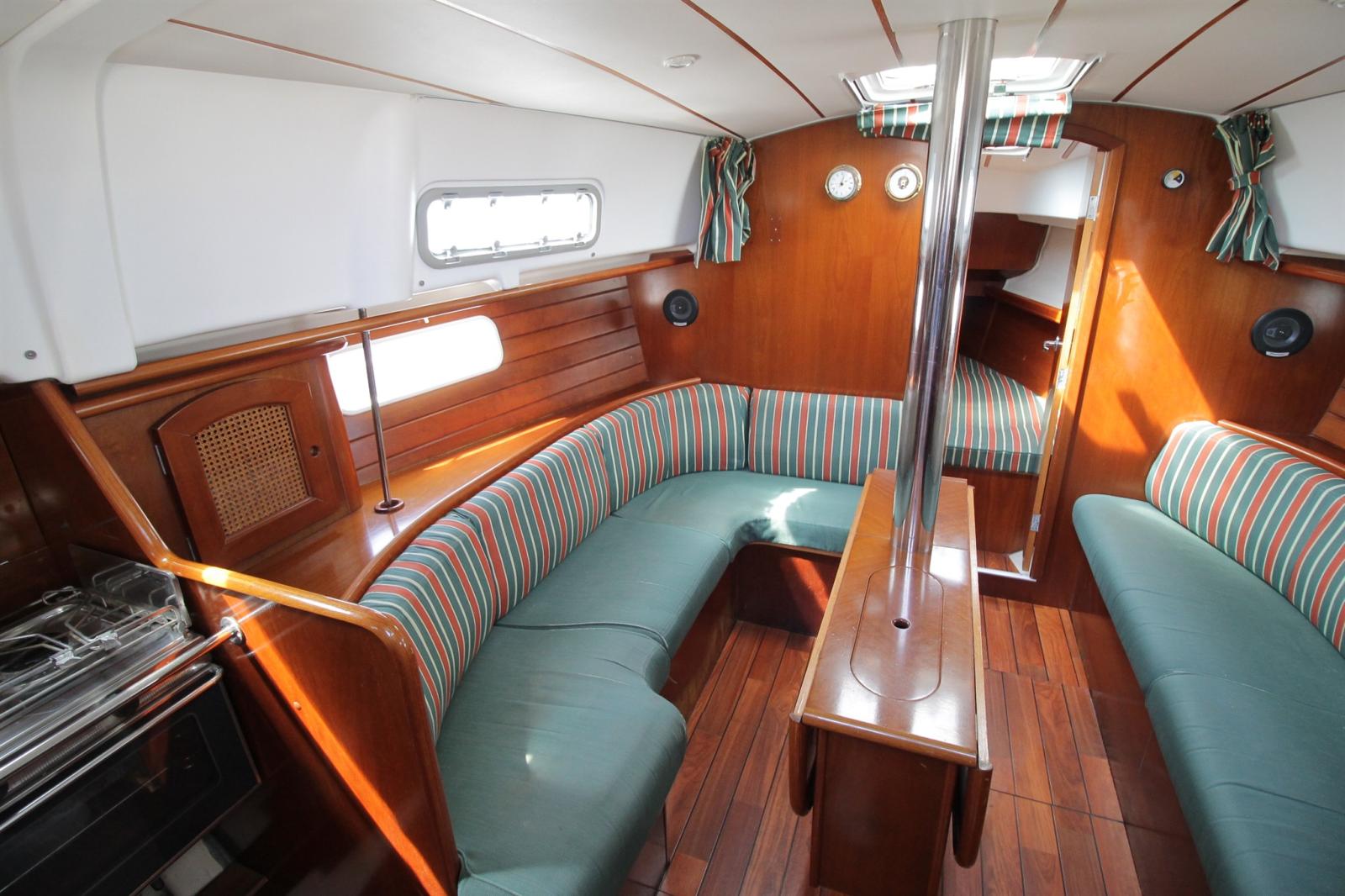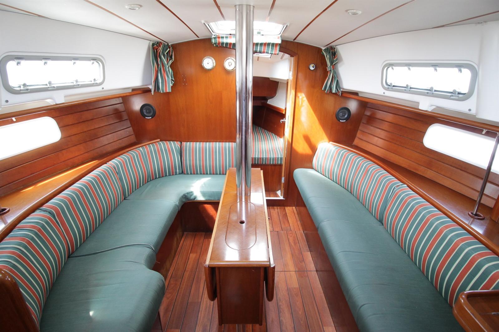 La società PHILIPPE PLAISANCE, specializzata in BARCHE A VELA, vi offre un OCEANIS 36 CC con il suo ormeggio e la consegna. Questo modello, dotato di un pozzetto centrale, è molto popolare per il volume del suo salone e la sua famosa cabina di poppa. Questa vettura di seconda mano è dotata di randa avvolgibile, verricello da 1000w, radar, pannello solare e un motore VOLVO da 40hp con poche ore. Il tirante è stato sostituito nel 2020.
