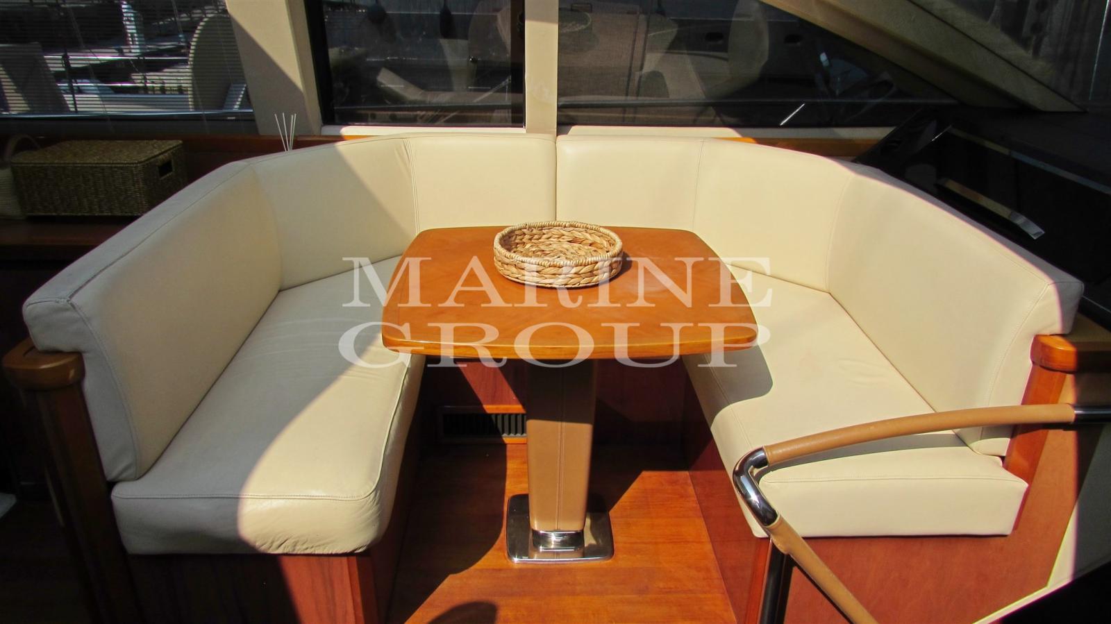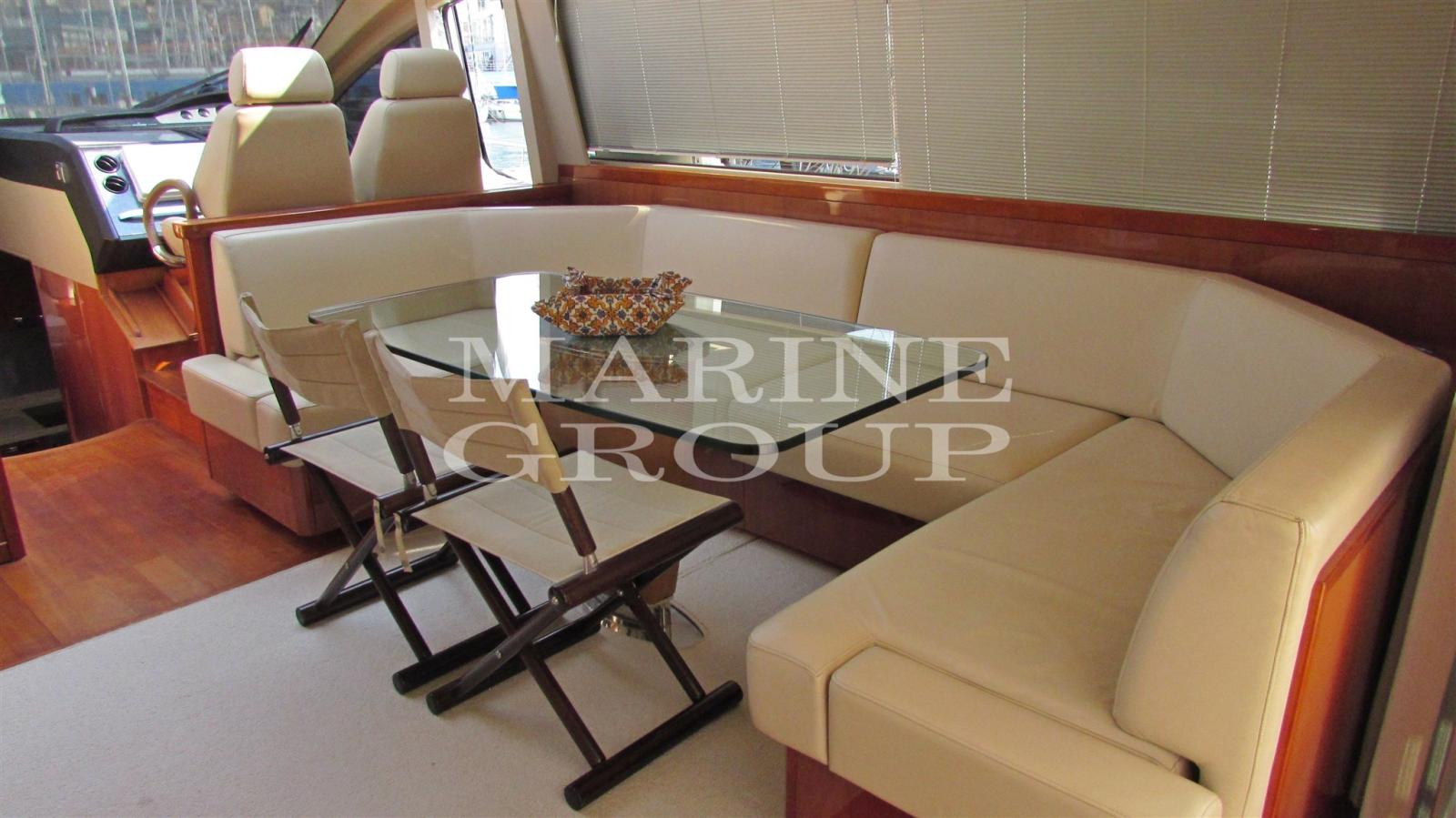 Ampio pozzetto con prendisole e tavolo con sedute e porte scorrevoli - Salone interno con tv a scomparsa - Cucina attrezzata - Cabina armatoriale a centro barca con bagno ensuite - Cabina Vip a prua con letto matrimoniale e bagno ensuite - Cabina ospiti con letti a castello e bagno ensuite - Cabina equipaggio con bagno a poppa