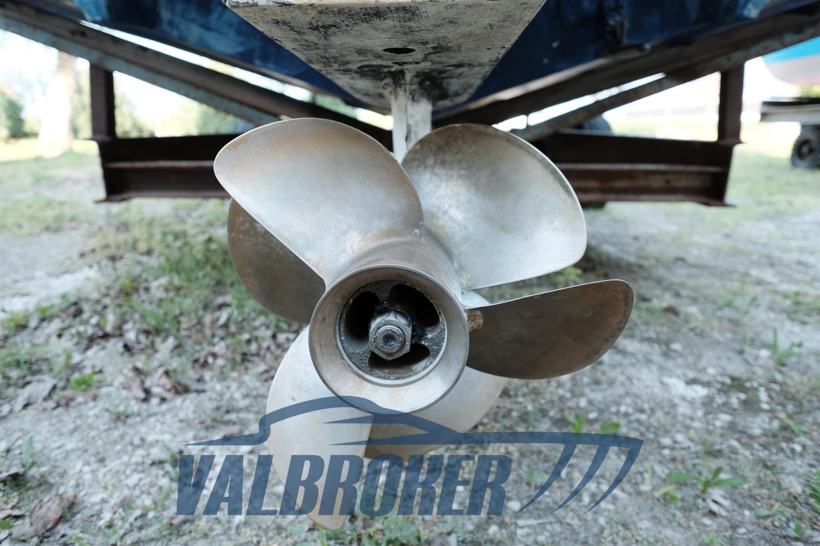Visibile in secca in Adriatico. Motorizzato 1x280 HP Volvo Penta 5.7 Gi DP/S. Lavori 2024: wrapping blu adesivo, cuscineria esterna, tendalino. Raiser revisionati nel 2025.
