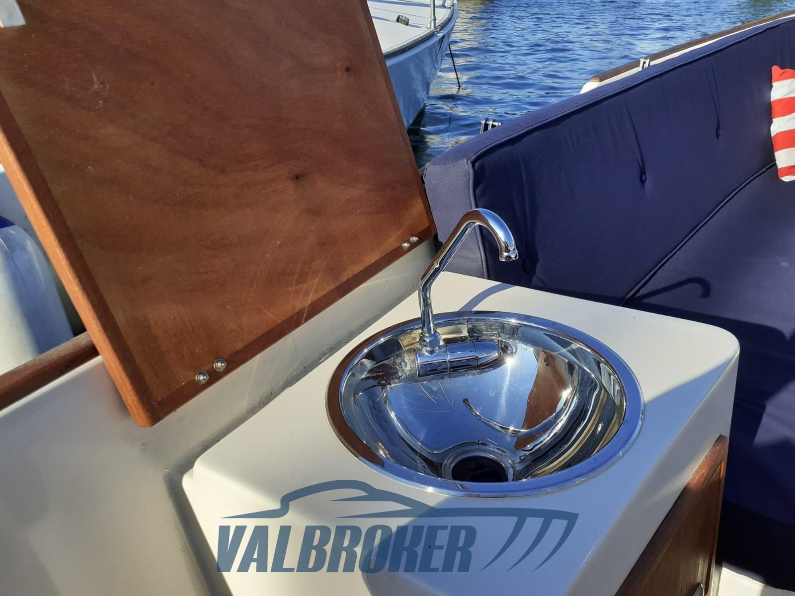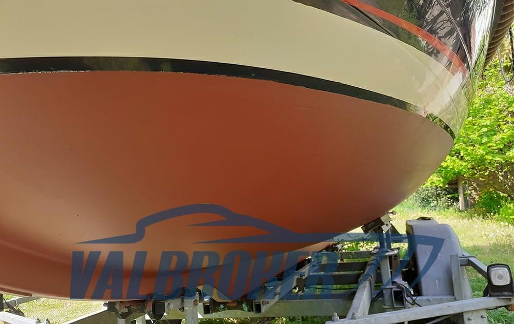 Scafo in vetroresina con rifiniture in teak massello, teak sempre oliato. Rimessata d'inverno.