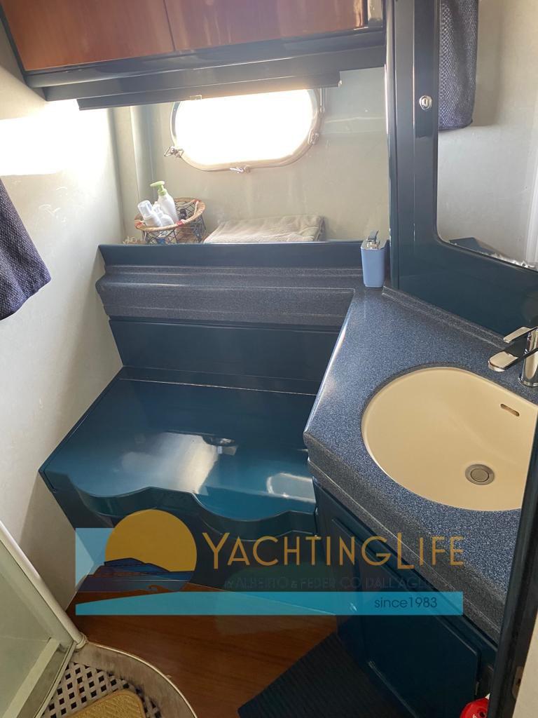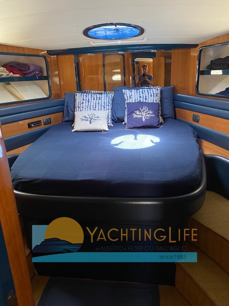 Ottime condizioni - Doppio set di tendalini uno beige 2020, l'altro nero 2021 con chiusura pozzetto e microforato laterale Sunbrella - Motori sbarcati e revisionati 2019 (canne, pistoni, fasce, bronzine di banco e di biella, valvole, prove idrauliche teste, spianate teste, aperti scambiatori, sostituiti o-ring e puliti sia acqua che olio, tubazioni, coppa olio, revisione turbine, iniettori e pompa alla Man per revisione, revisione invertitori, verniciati, sostituiti gomiti scarico, revisione motorini avviamento e alternatori, boccole assi, silent block, impianto nafta) dopo revisione fatte 500 ore - Tubazioni motori acqua salata 2023 - Revisione verricello 2022 - Teak massello pozzetto e pedana 2020 - Lavori 2024: riverniciata poppa, carena a zero, coibentazione sala macchine, sostituzione prese mare motori e generatore e revisione antincendio - Sensori e tubazioni passerella idraulica revisionati-