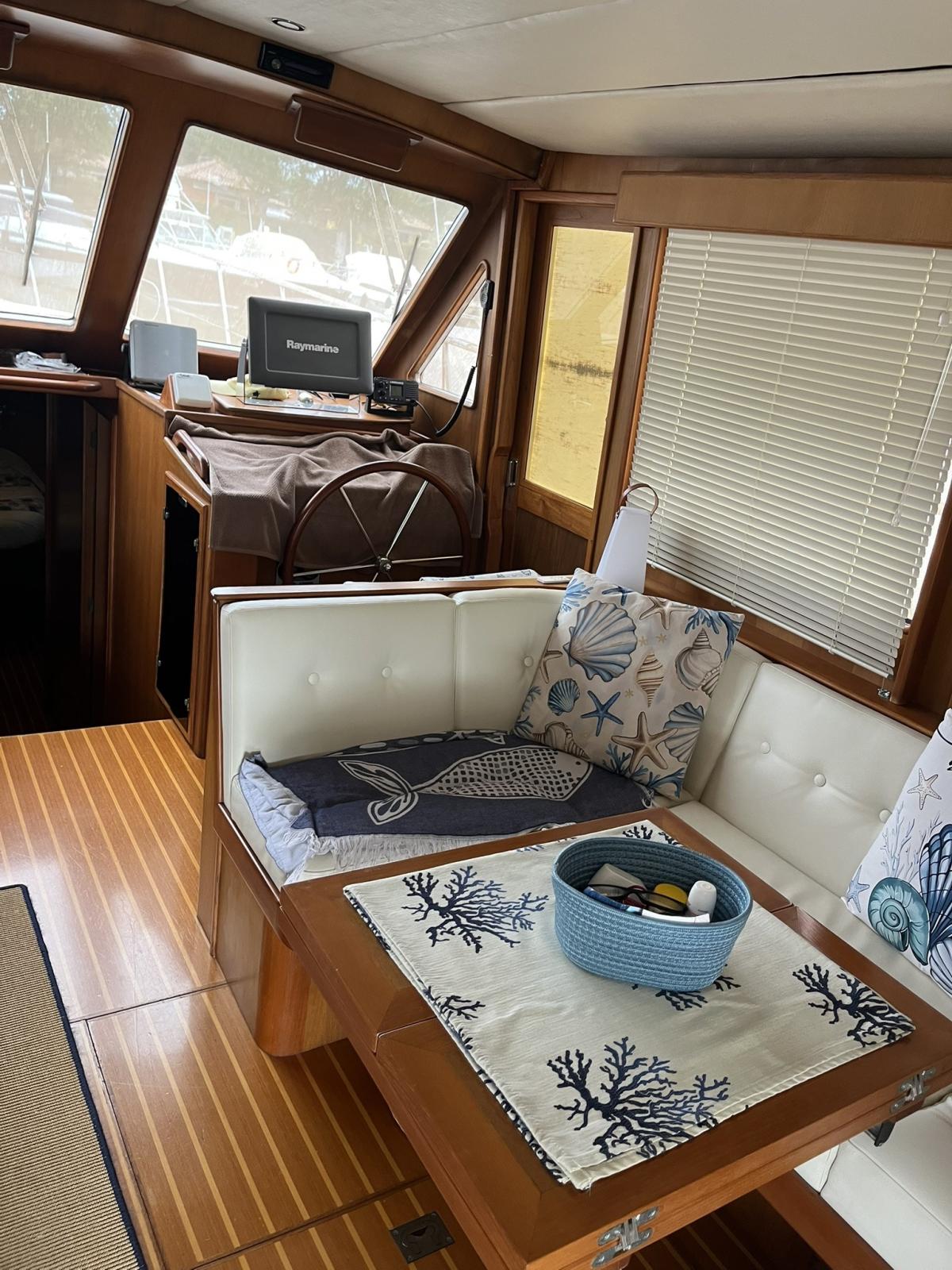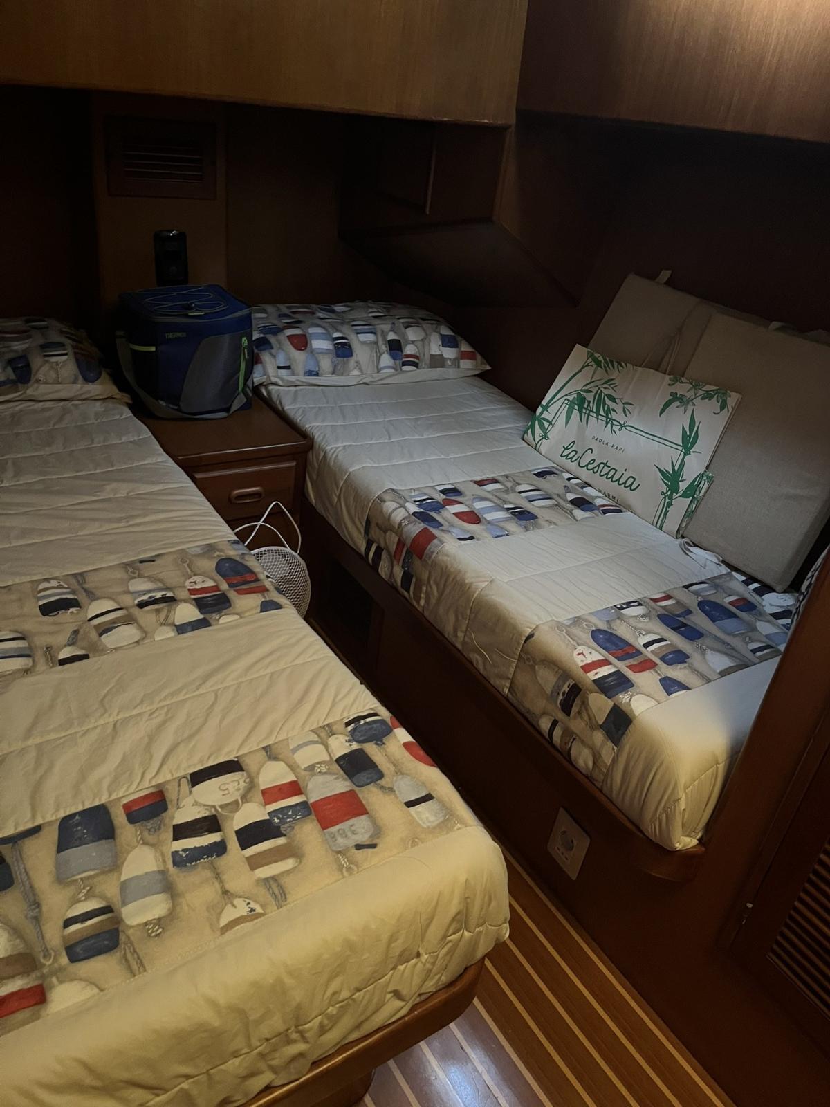 La barca e’ stata estensivamente refittata nel 2021 e scrupolosamente mantenuta fino ad oggi. I lavori principali sono stati: Impianto elettrico completamente rifatto con nuovi cavi, prese elettriche, caricabatterie Victron, staccabatterie, portafusibili, differenziali, isolatori galvanici, inverter Victron, sensori allarme, Digital Multi Control Victron e sistema di gestione combinato Victron 4 con schermo a colori in plancia e controllo da remoto.Nuove batterie servizi, motori e elica prua AGM 220 Victron . Installazione di 2 pannelli solari. Nuovo impianto VHF e antenna Istallazione di 2 antenne internet e modem wireless Aggiunto un GPS Raymarine E120 comprato usato Nuova autoclave Jabsco Nuovi rubinetti cucina, bagno e doccetta pozzetto Nuove luci di via Nuova pompa manuale sentina Nuovi tubi e centralina idraulica passerella Nuovi vetri fume’ laterali e porta dinette e porte laterali riverniciate. Rifatti molti dei pannelli di legno interni e ripristino colore cornici Riverniciati I gavoni Rifatti alcuni cielini Smontati e risigillati tutti gli oblo’ Cambiate tutte le lampadine con LED e nuovi faretti lettura cabine Nuovo nome barca in acciaio Parasoli laterali e posteriori in telo ombreggiante. Oscuranti estivi per vetrature laterali e frontali plancia. Nuove cuscinerie prendisole Nuovo winch tonneggio in pozzetto Nuovo piano cottura e microonde Nuovo serbatoio acqua prua Pulizia serbatoi gasolio Sostituzione prese a mare Revisione alternatore Nuove pompe ricircolo aria condizionata Lucidatura murate fatta ogni anno Pulizia scambiatori calore/intercooler e revisione pompe acqua mare Sostituzione elettrovalvole gasolio Nuove tubazioni scarico, elettrovalvola e pompa wc elettrico.