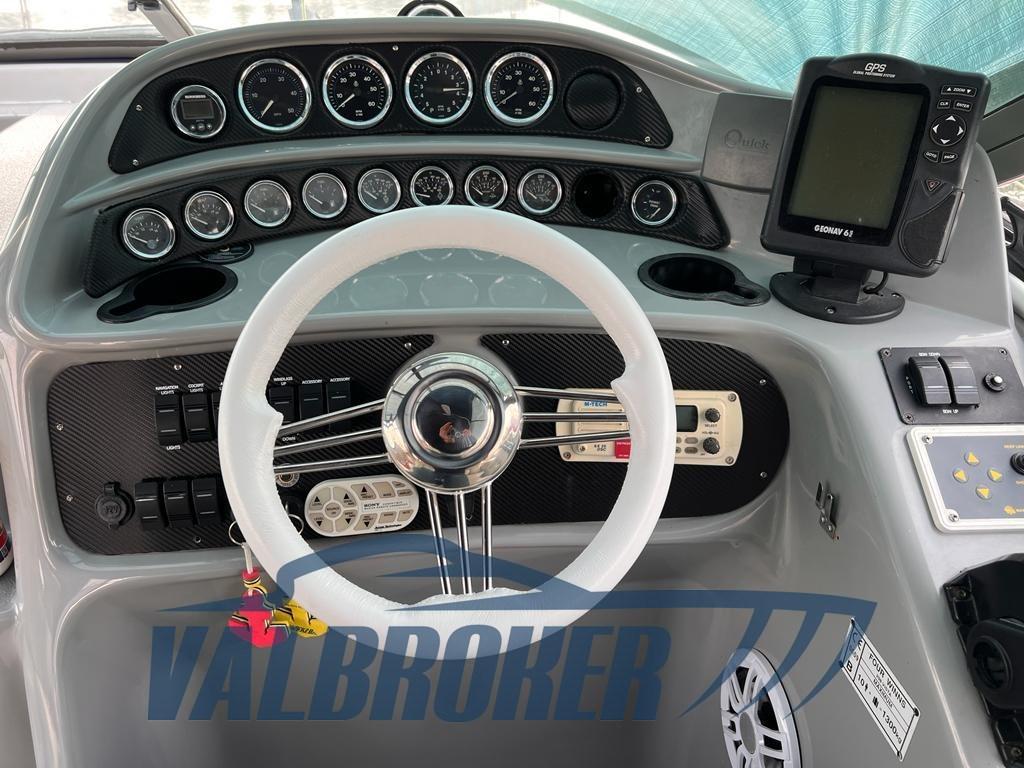 Cantiere americano, Four Winns 298 Vista, visibile sul Lago Maggiore. Motorizzato 2X 270 Hp Volvo Penta 5,0 Gi V8 benzina. Barca in grado di ospitare comodamente 4 persone, con matrimoniale a V di prua, cabinetta matrimoniale a poppa, cucina, bagno con porta. Perfetta per uscite giornagliere o campeggio nautico e brevi crociere. Ampio divano in pozzetto con tavolo trasformabile in comodo prendisole.