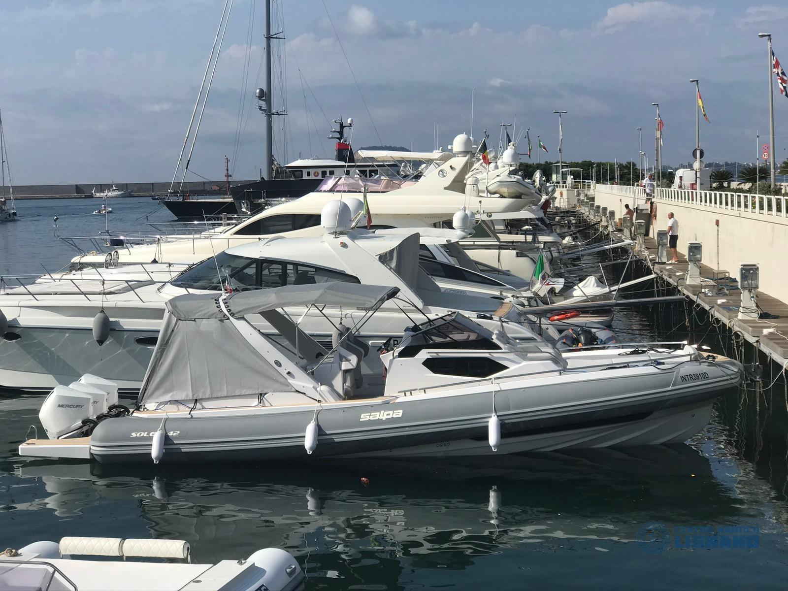 Gommone Salpa Soleil 42 del luglio 2020 con 3 motori fuoribordo Mercury Verado V8 da 300Hp ( 900Hp totali ), circa 490 ore di moto, bandiera Italia,