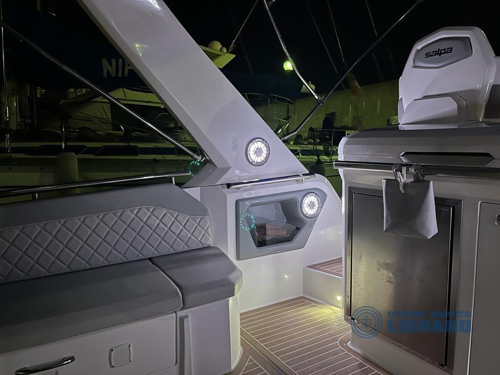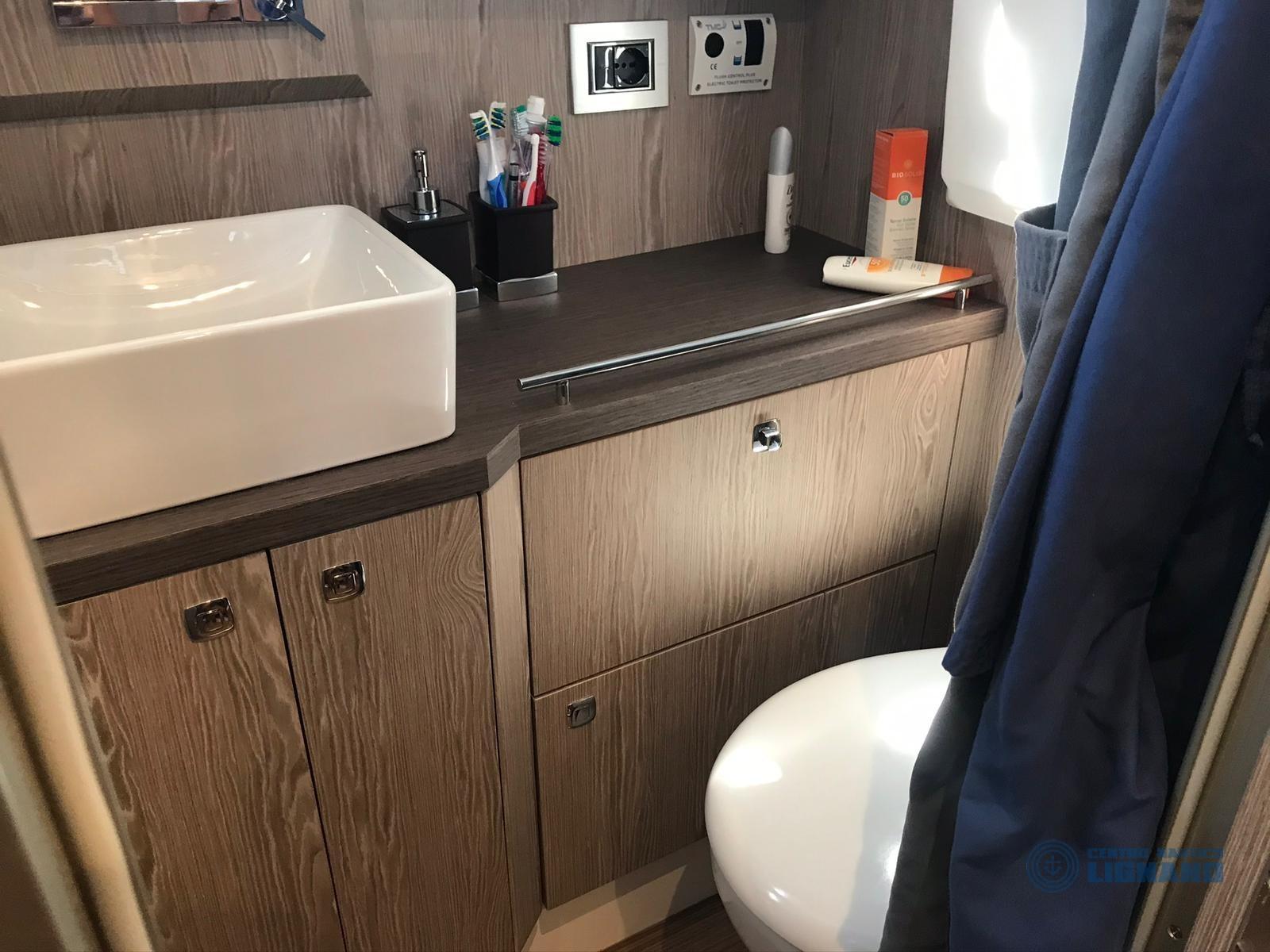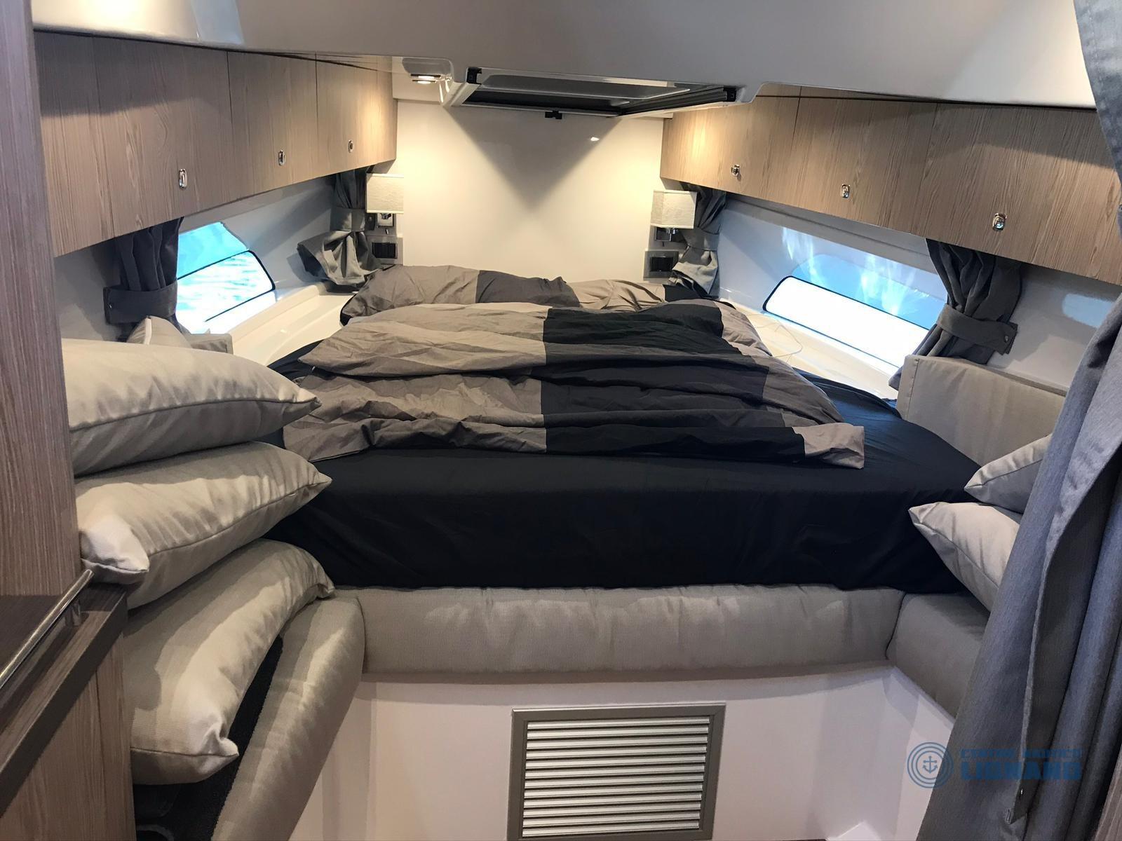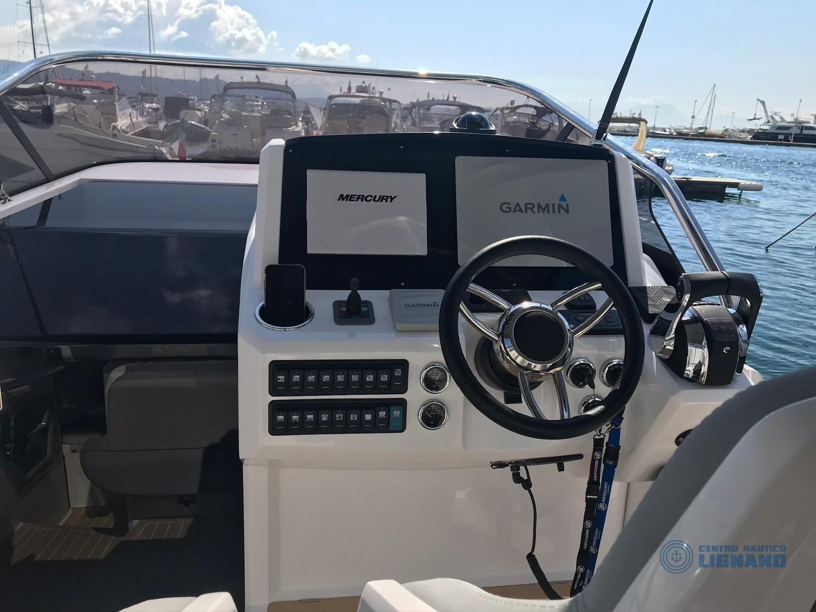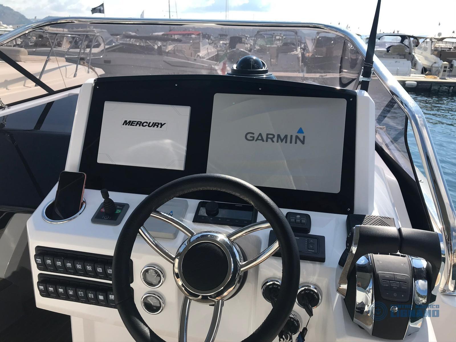 Vari accessori tra cui: bussola, ecoscandaglio Garmin, Gps Garmin 1222xsv Plus, monitor Vessel View 903, pilota automatico Garmin, radio VHF Dsc Garmin 315, sedile copilota, verricello elettrico con conta catena e ancora, pompa autoclave, impianto batterie con nr. 3 da 100Ah, impianto 220V con caricabatteria Quick, impianto doccia acqua calda/fredda esterna, elica di manovra a prua, luci di cortesia, luci subacquee, presa 220v banchina, rollbar, ARIA CONDIZIONATA, boiler acqua calda 25 lt, inverter Master AC 12/1500, prese interne 12v/220v, impianto WC marino elettrico, impianto redio stereo BT con 4 altoparlanti a 3 vie tutto Fusion, subwoofer Fusion, amplificatore Fusion, cucina esterna con lavello acqua calda/fredda, fornello con due fuochi a gas, frigorifero 90 litri., tapezzerie cuscineria completa di poppa e di prua, oscuranti frangisole, tenda nautica TOTALE, tendalino supplementare antipioggia, telo copripozzetto. INTERNI con 2 cabine doppie, devi foto, bagno separato.