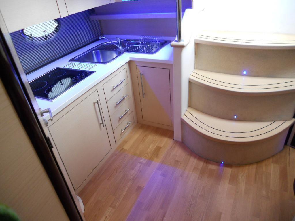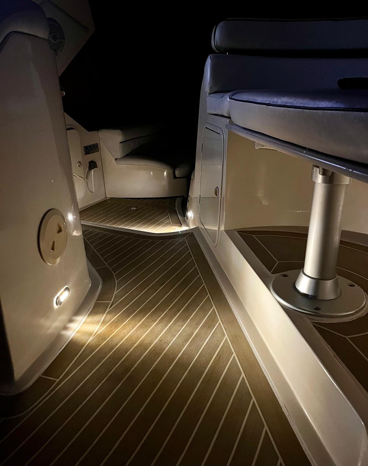 Vari sensori motori; Installazione 4 batterie nuove 180A . Due per servizi, motore destro e motore sinistro. Turbine nuove entrambi i motori; Sbarcato motore destro; Sostituzione forcella di sterzo piede destro; Scoppiato transom destro e revisionato; Giunto Para strappi motore destro; silent block motore destro e sinistro; Verniciatura entrambi i motori; Verniciatura completa sentina; Sbarco serbatoio acqua e revisione; Rifacimento pianale copertura serbatoio acqua; sostituzione pompe di sentina; Rifacimento completo impianto elettrico batterie,caricabatterie e linee di distribuzione; Presa 220 inox; Sostituzione Cavo 220 da presa a quadro interno; Revisione condensatore aria condizionata; Installazione filtro acqua mare in ottone per climatizzatore; Smontaggio di tutti gli oblò revisione e sigillatura, Sigillatura di tutti i candelieri; Sostituzione e taratura galleggianti gasolio; Installazione batteria dedicata per elica di prua 180A; Installazione caricabatterie 75 A. Totale due caricabatterie uno da 45 A ed uno da 75A; tagliando motori; Tagliando piedi completo (cuffie, cavi marce, cuscinetto cardano); Sostituzioni entrambi i piedi tubazioni trim; Tagliando generatore; Lucidatura completa.