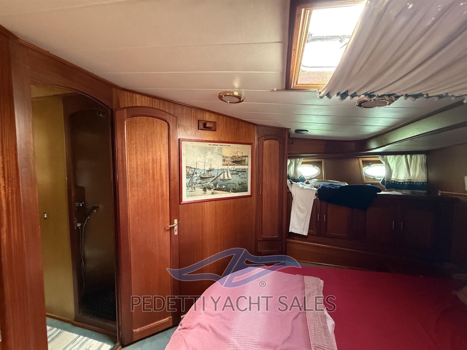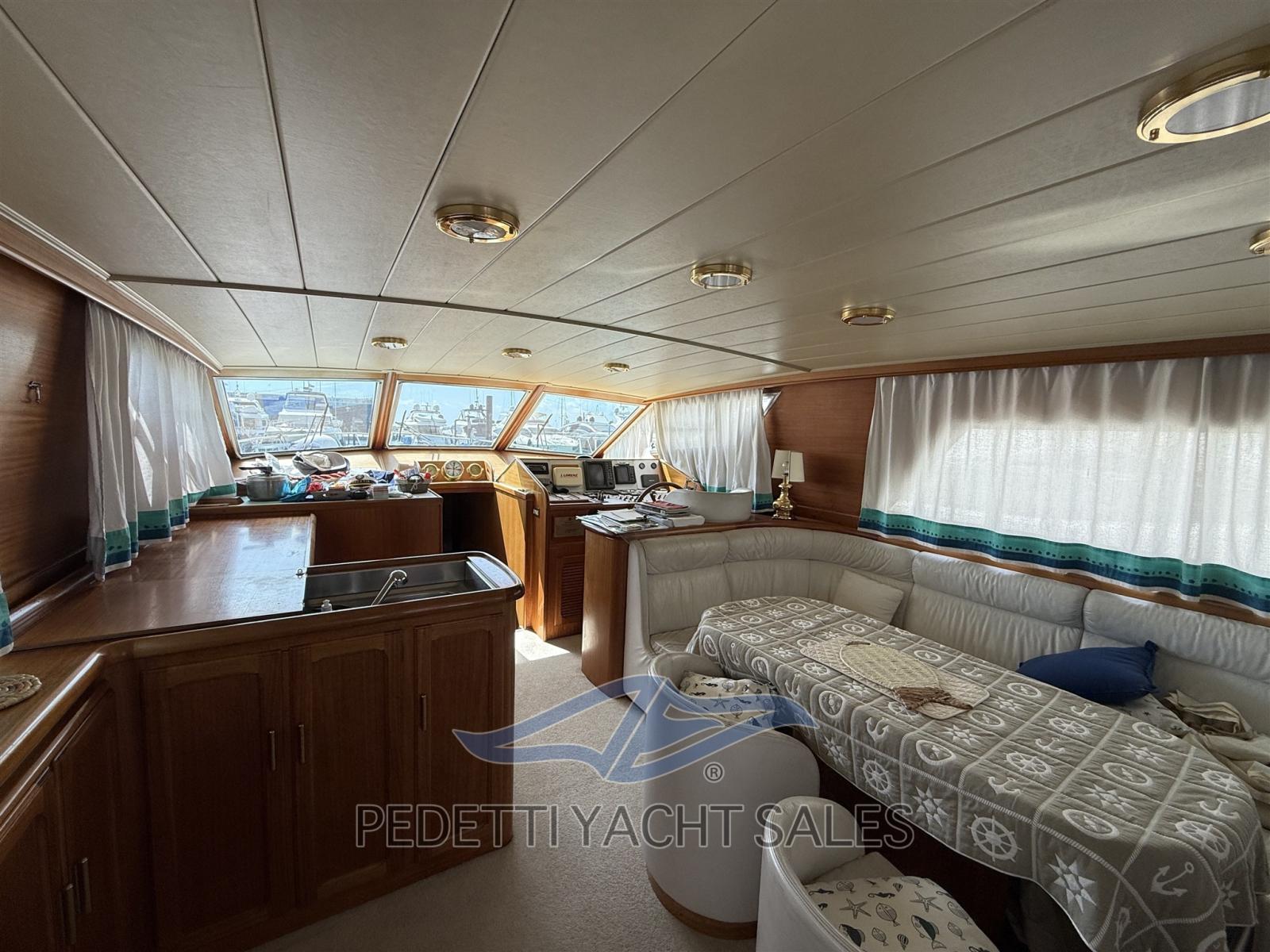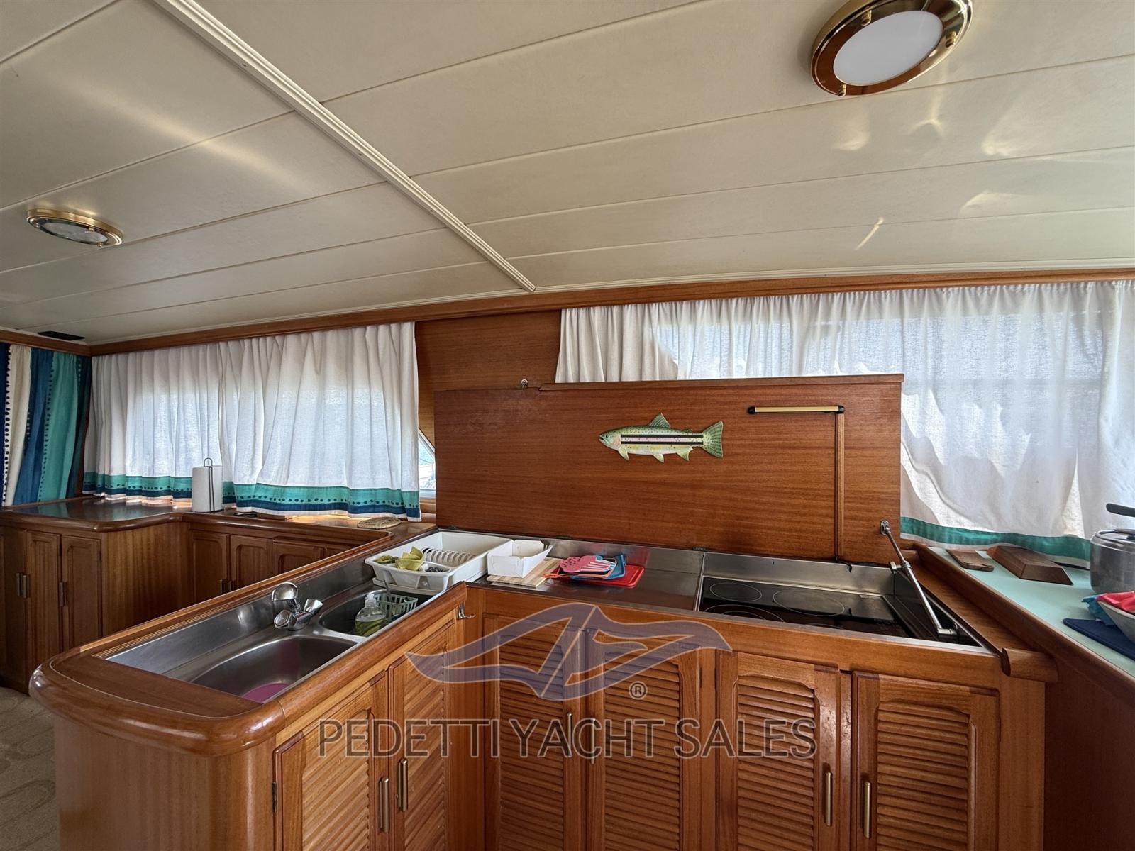 Allarme fumo/gas, Allarme motore, Allarme sentina, Bocche di Lupa, Camminamenti laterali in teak, Cavo corrente di banchina, Corrimano, Doccia esterna, Doppia timoneria, Flap idraulici, Gruette per tender, Impianto antincendio, Indicatori Flaps, Luci di cortesia, Parabordi, Passerella, Pompa di sentina automatica, Pompa di sentina manuale, Ponte in teak, Porta ingresso, Pozzetto Teak, Presa 220V banchina, Presa acqua banchina, Ripetitore strumentazione, Salpa Ancore Elettrico, Scala reale, Scaletta da bagno, Tavolo pozzetto, Tavolo Salone Abbattibile, Tromba, Tuga in teak, Winch tonneggio di poppa, Winch tonneggio di prua.