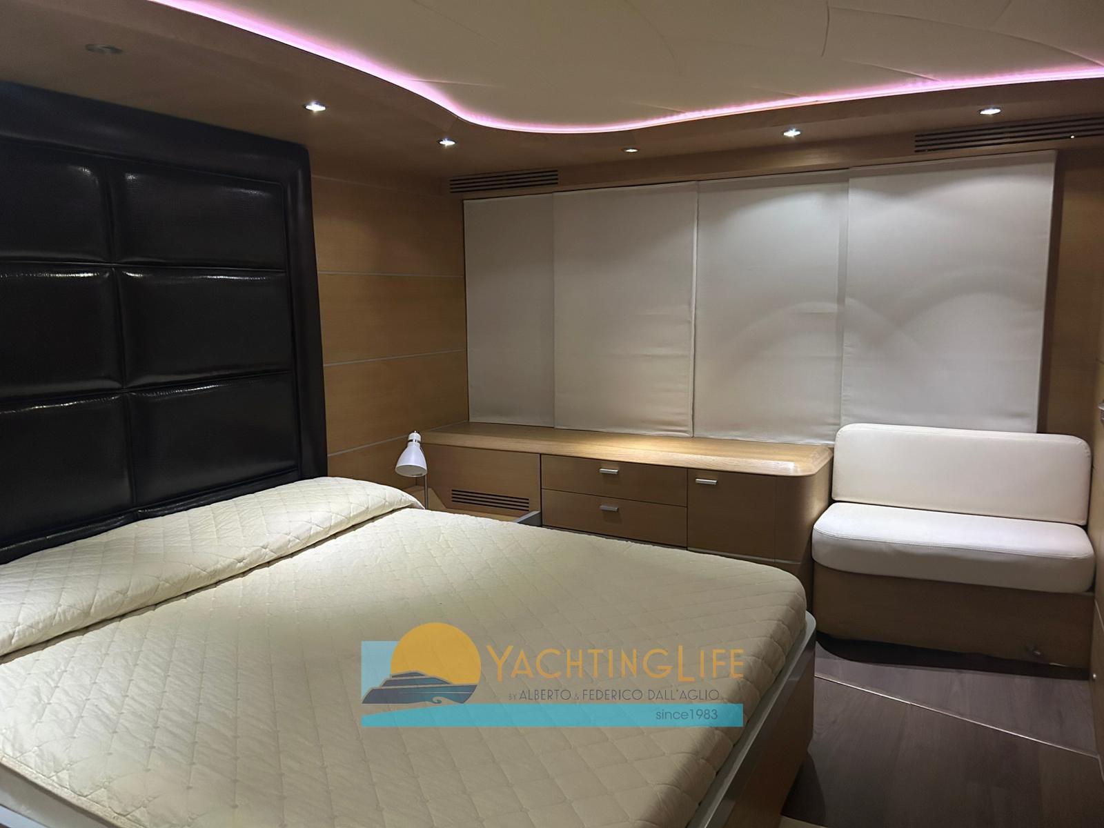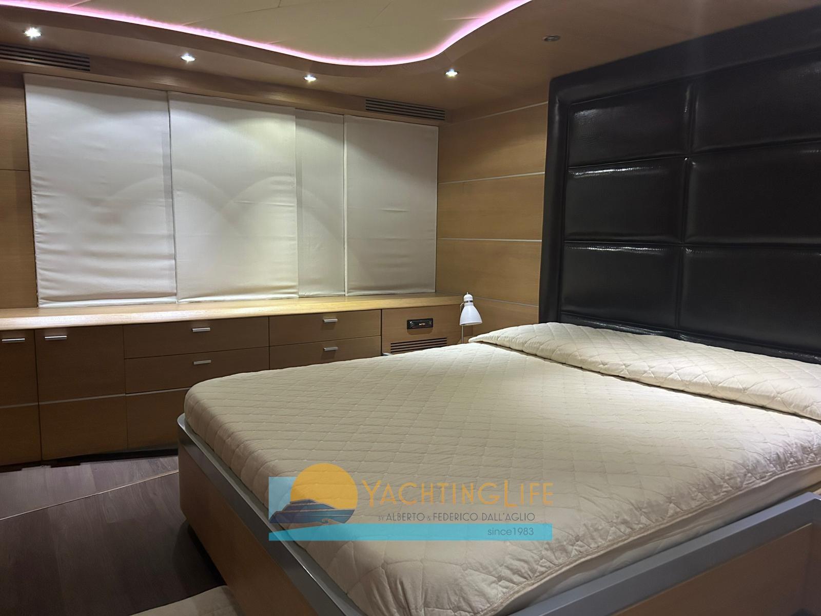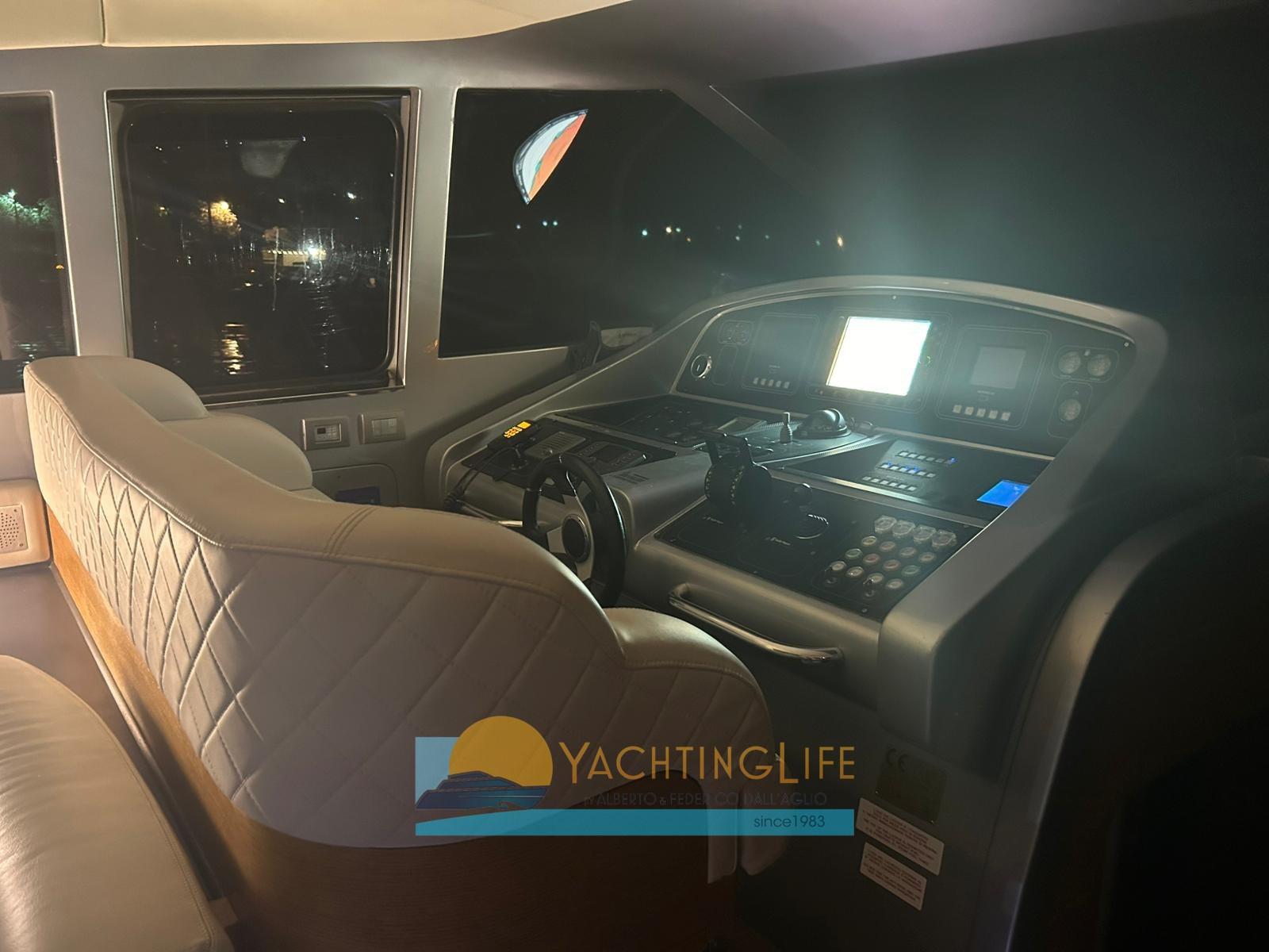 Allarme motore, Allarme sentina, Autoclave, Camminamenti laterali in teak, Doccia esterna, Faro orientabile, Flap idraulici, Garage per tender, Hard top, Impianto antincendio, Indicatori Flaps, Luci di cortesia, Passerella (idraulica), Pompa di sentina automatica, Porta ingresso, Pozzetto Teak, Presa 220V banchina, Salpa Ancore Elettrico, Scaletta da bagno, Tavolo pozzetto, Tromba, Winch tonneggio di poppa.