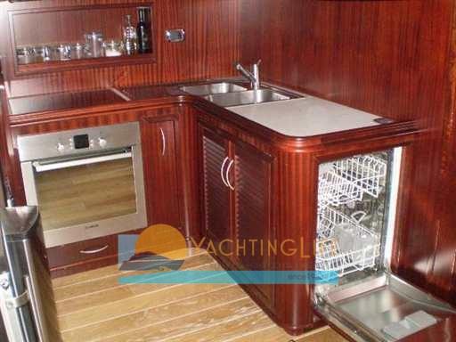 Boiler, Cassaforte, Dissalatore (200 lt/h), Impianto acque nere, Pavimento interno in legno (chiaro), Prese interne 12v, Prese interne 220v, 4 WC marino elettrico.