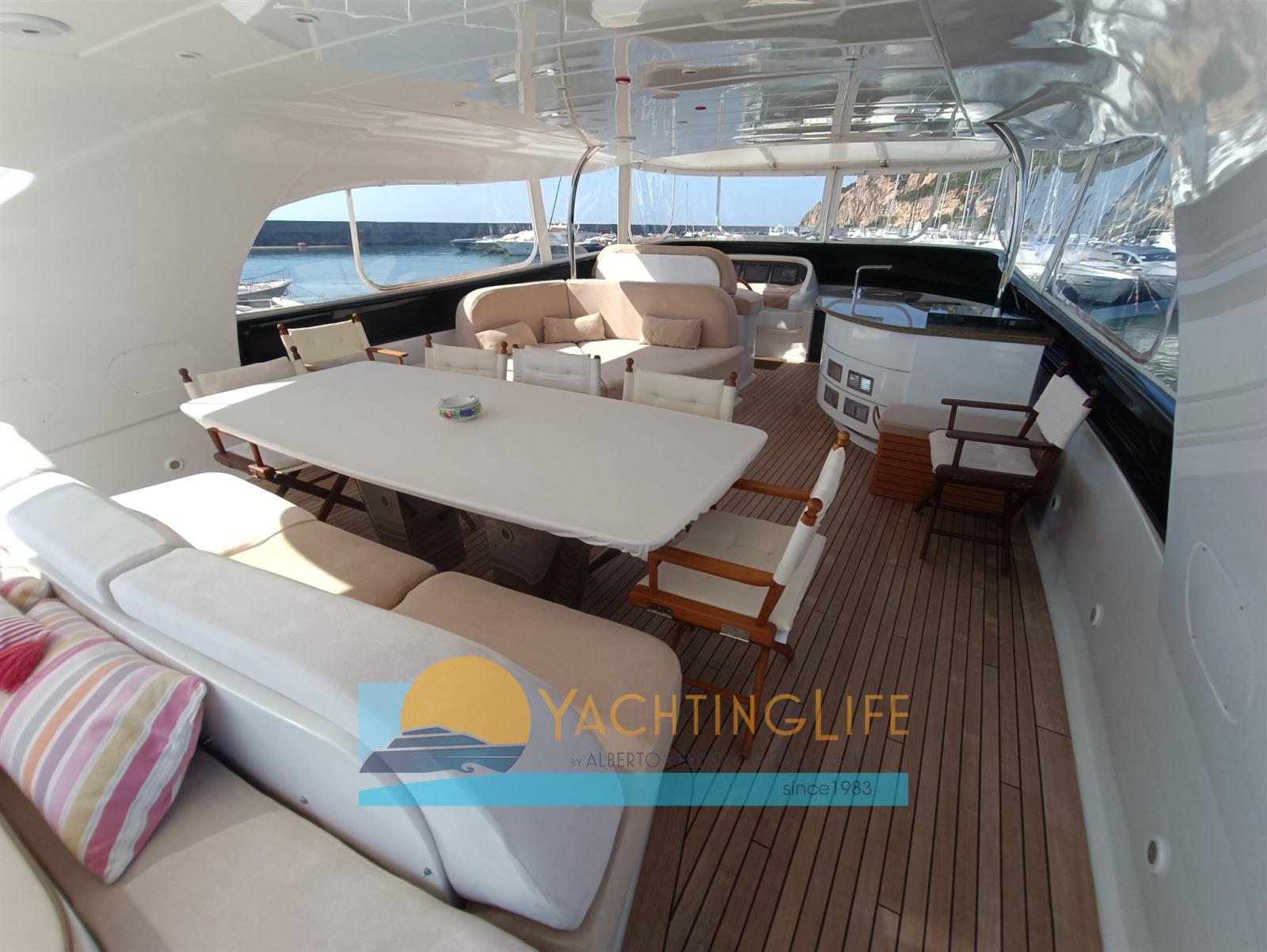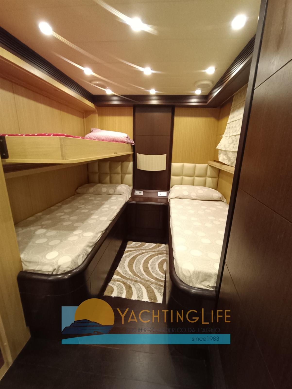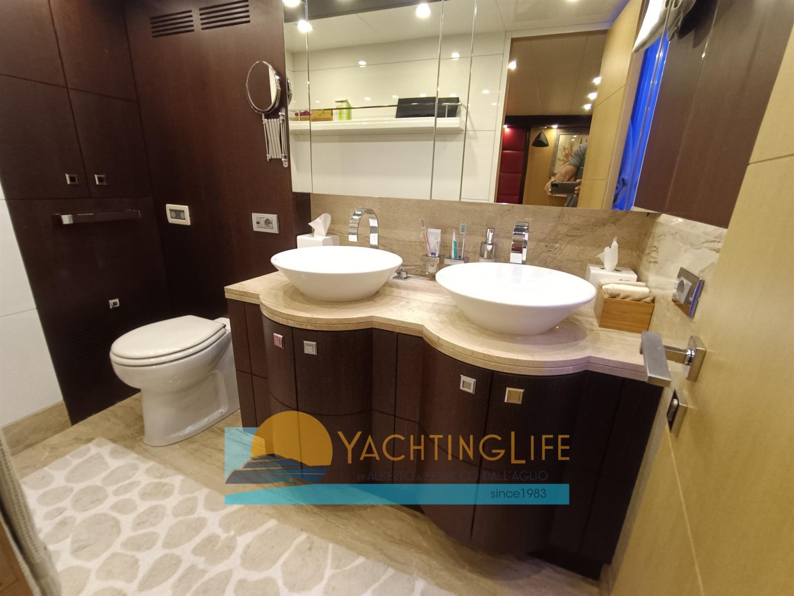 Unico proprietario - Condizioni veramente eccellenti - Versione con Hard Top - Layout con 3 matrimoniali ed una tripla, ognuna con bagno, day toilet, 2 cabine equipaggio ognuna con un bagno (comandante singola a poppa equipaggio doppia a prua)- Stabilizzatori Mitsubishi Zero Speed - Elettronica di navigazione Raymarine sostituita 2017 - Imbarcazione da diporto sotto i 24mt. - Jacuzzi sul fly - Predisposizione termocamera Flir per navigazione notturna - Interni in essenza di rovere sbiancato e wengè - Climatizzazione maggiorata in salone ed anche in sala macchine - Scarichi con coibentazione in ceramica - Cucina con chiusura elettrica