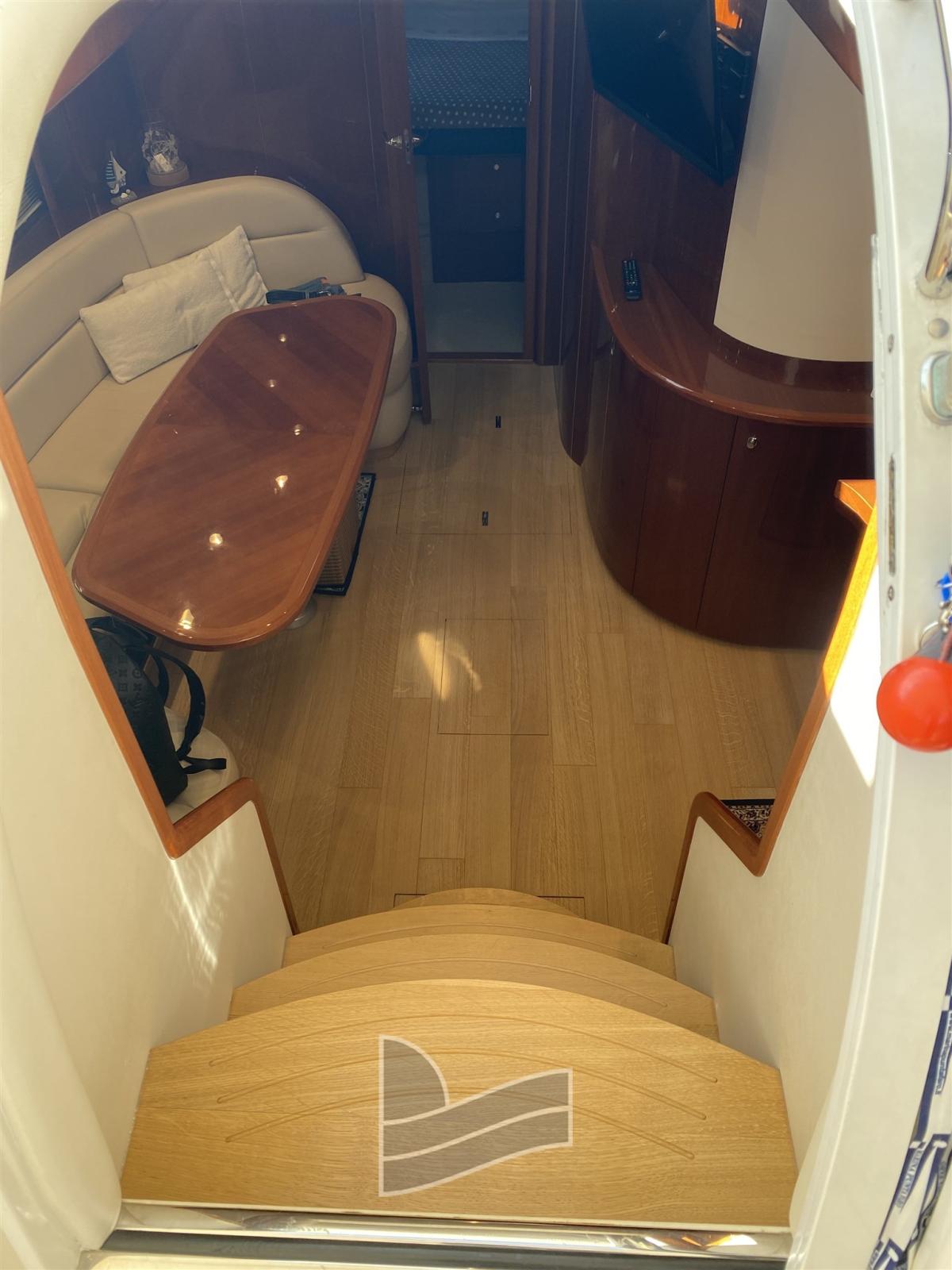 Allarme motore, Autoclave, Colorazione speciale (Blue Navy), Doccia esterna, 2 Flap idraulici, Hard top, Impianto antincendio, Lavandino nel Pozzetto, Passerella, Piattaforma (di poppa in teak), Porta ingresso, Pozzetto Teak, Presa 220V banchina, Presa acqua banchina, Salpa Ancore Elettrico, Scaletta da bagno, Tavolo pozzetto, Tromba.