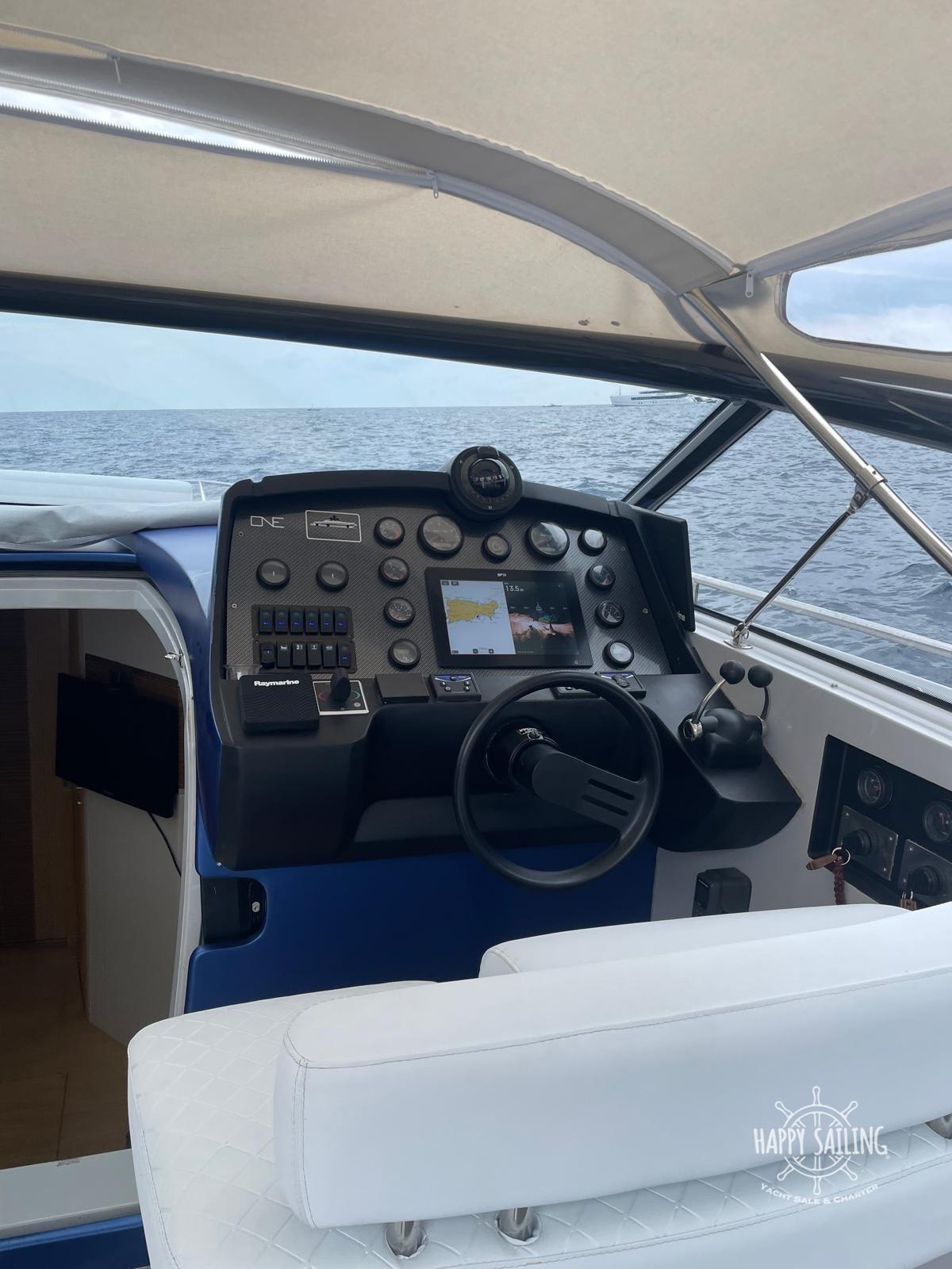 Autoclave, Colorazione speciale (wrapping blu), Doccia esterna, Flap elettrici, Luci di cortesia, Piattaforma, Presa 220V banchina, Salpa Ancore Elettrico, Tavolo pozzetto.
