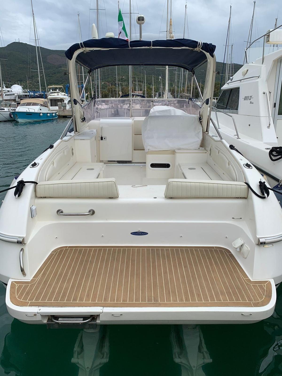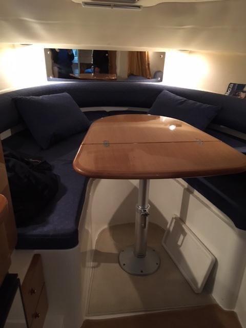 Il pozzetto è Genius ...spazioso e ben organizzato, con divano a “U” trasformabile in prendisole grazie al tavolo centrale abbattibile. A poppa troviamo una plancetta rifinita in teak, dotata di scaletta bagno, ideale per facilitare la discesa in acqua. Presenti tendalino parasole, gavone di poppa con alza motore elettrico e comoda zona relax a prua con cuscineria completa.