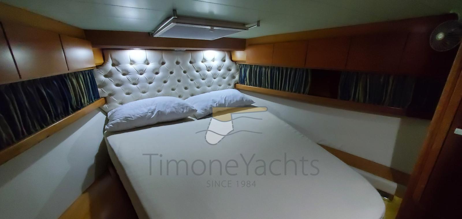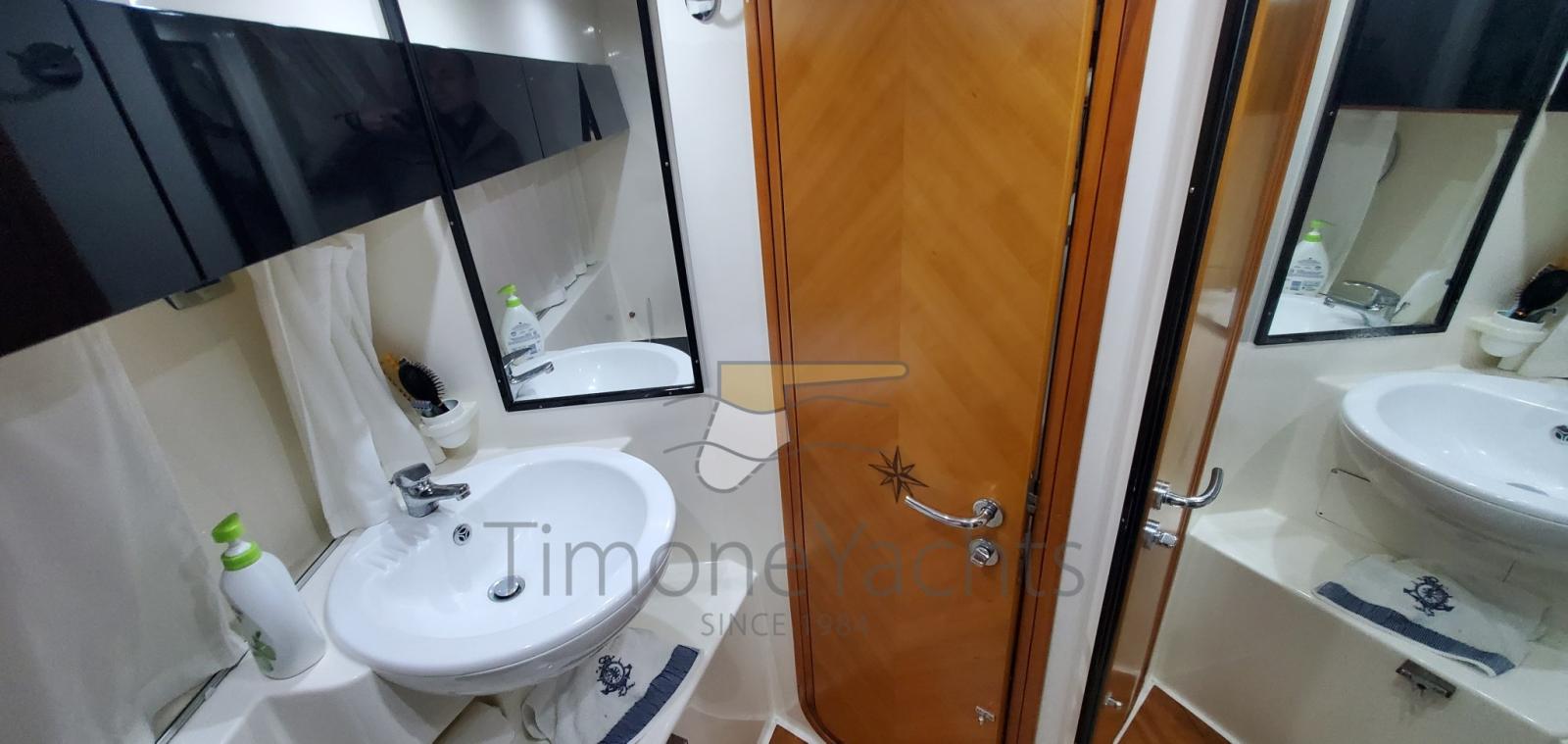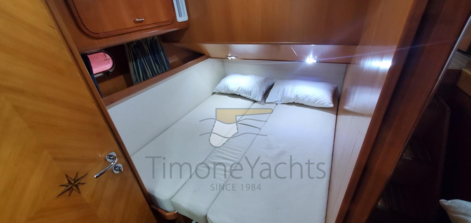 Cabina di prua matrimoniale con bagno esclusivo, cabina ospiti con letti gemelli ( modifica amovibile per trasfromazione in matrimoniale) e bagno esclusivo.